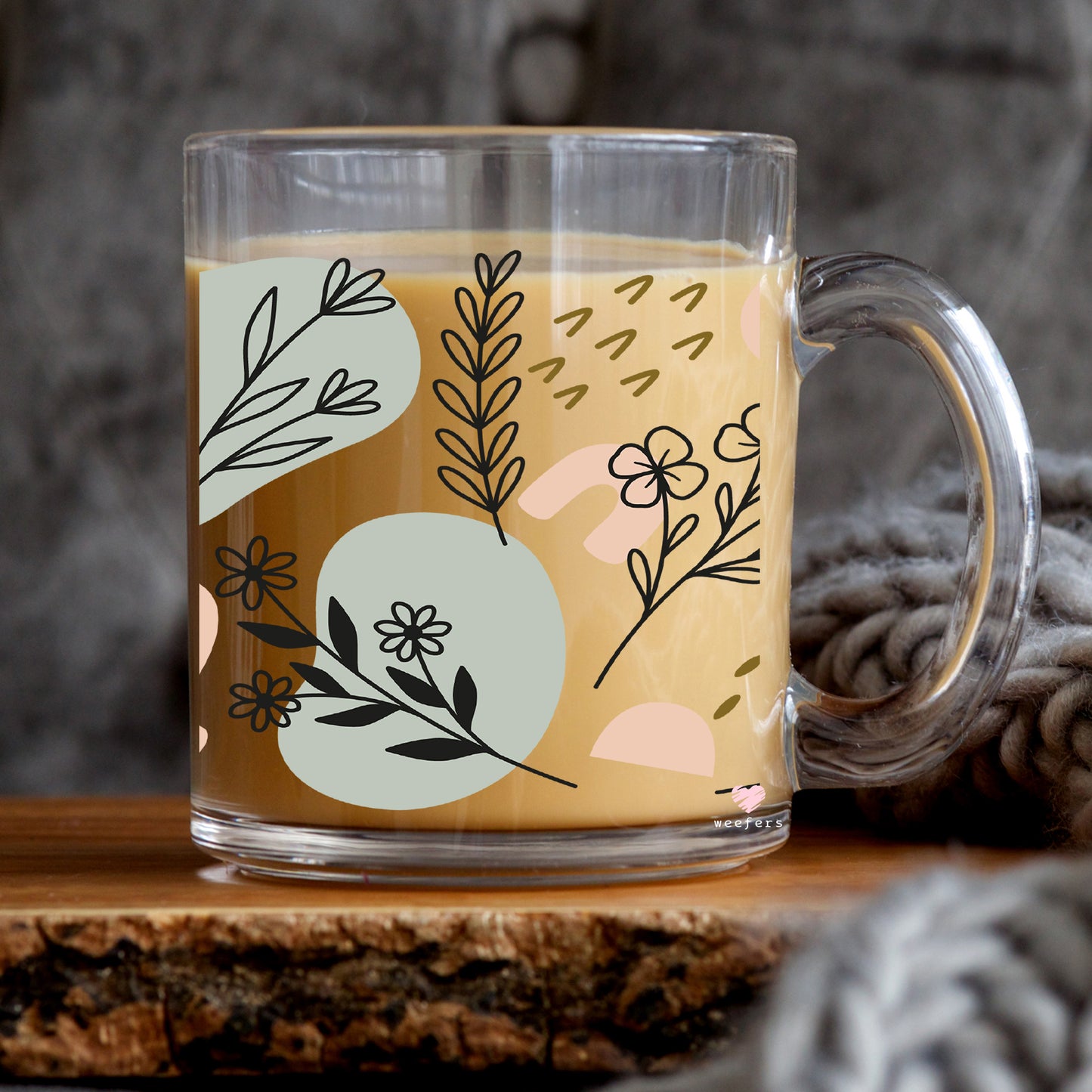 Green Abstract Floral 11oz Coffee Mug UV DTF or Sublimation Wrap - Decal