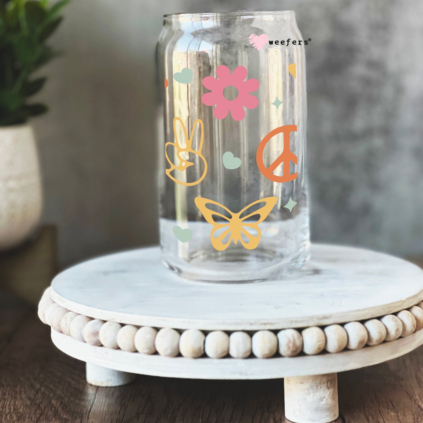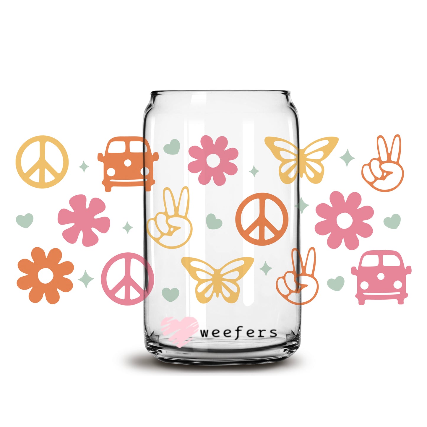 Groovy Peace Bus 16oz Libbey Glass Can UV DTF or Sublimation Cup Wrap - Decal Transfer