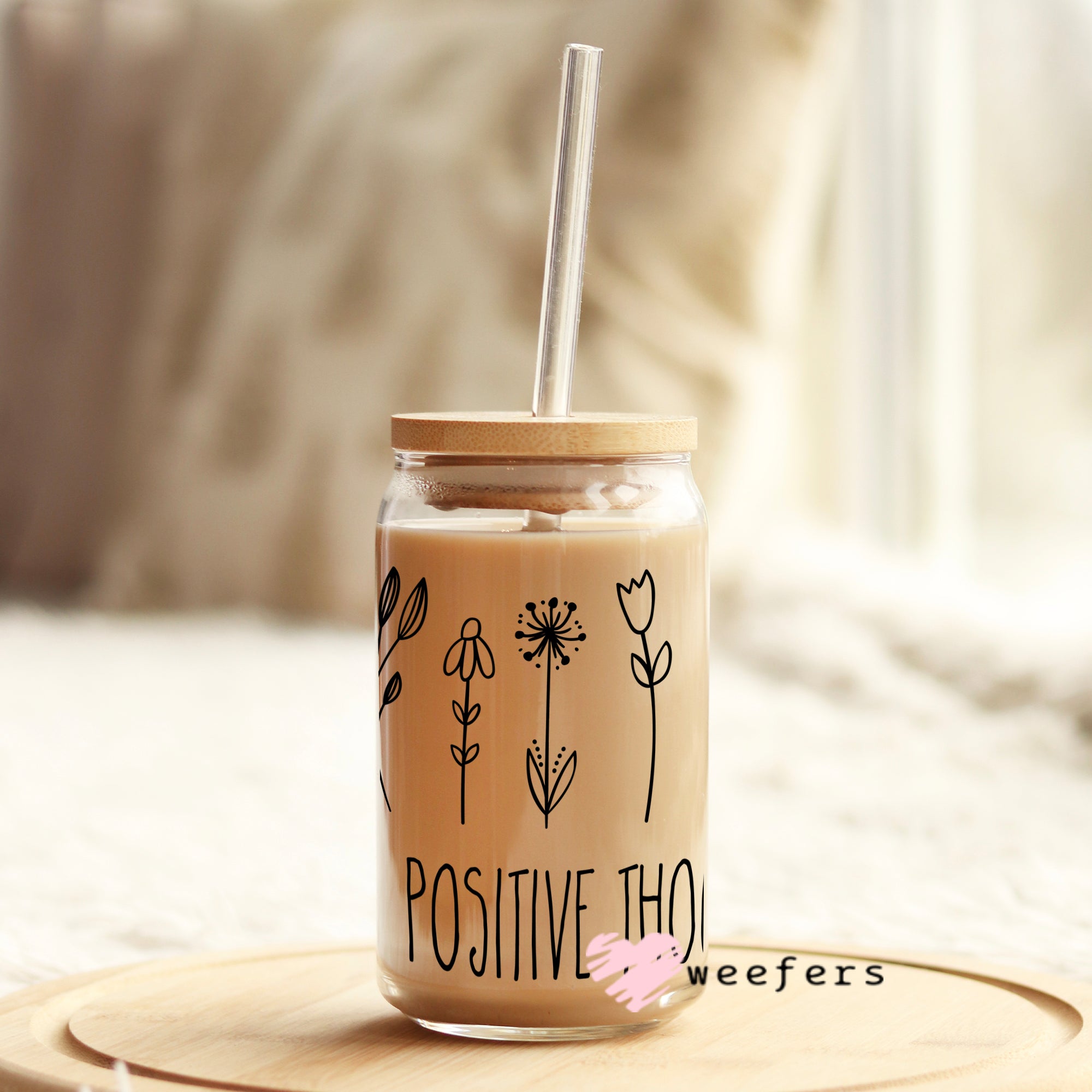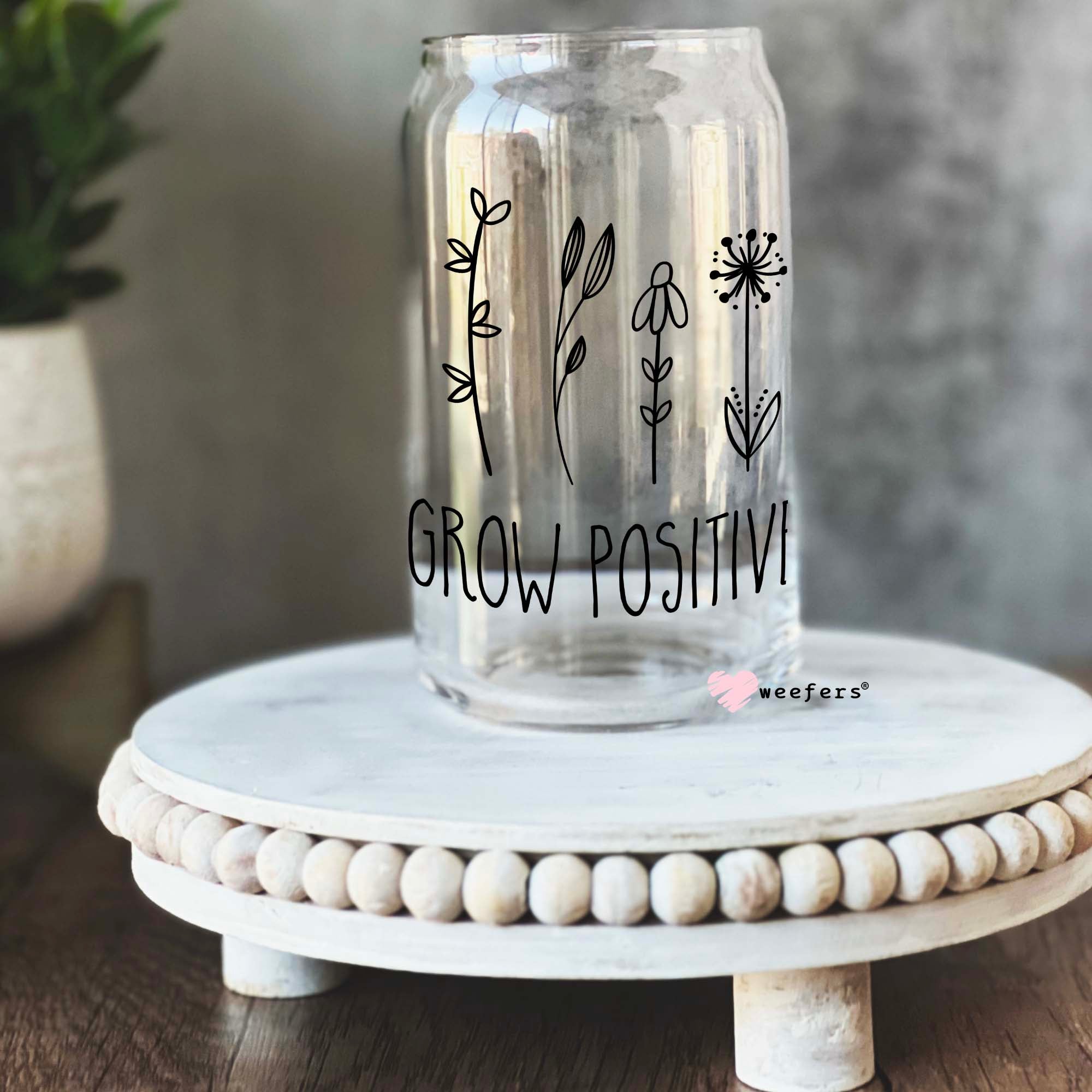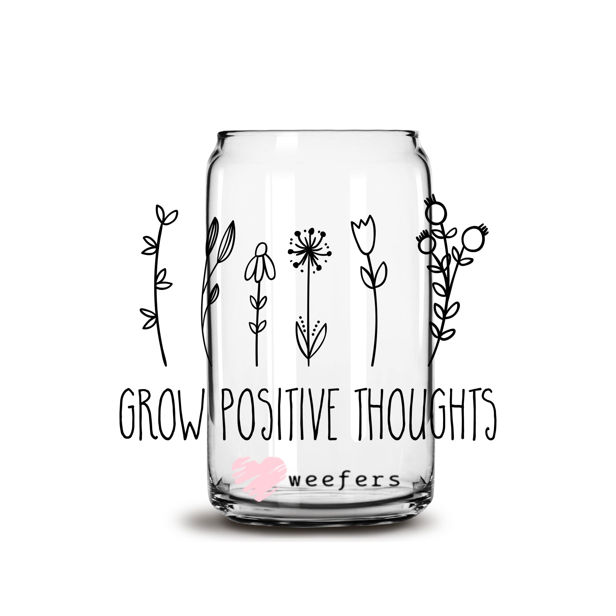 Grow Positive Thoughts 16oz Libbey Glass Can UV DTF or Sublimation Wrap - Decal Description