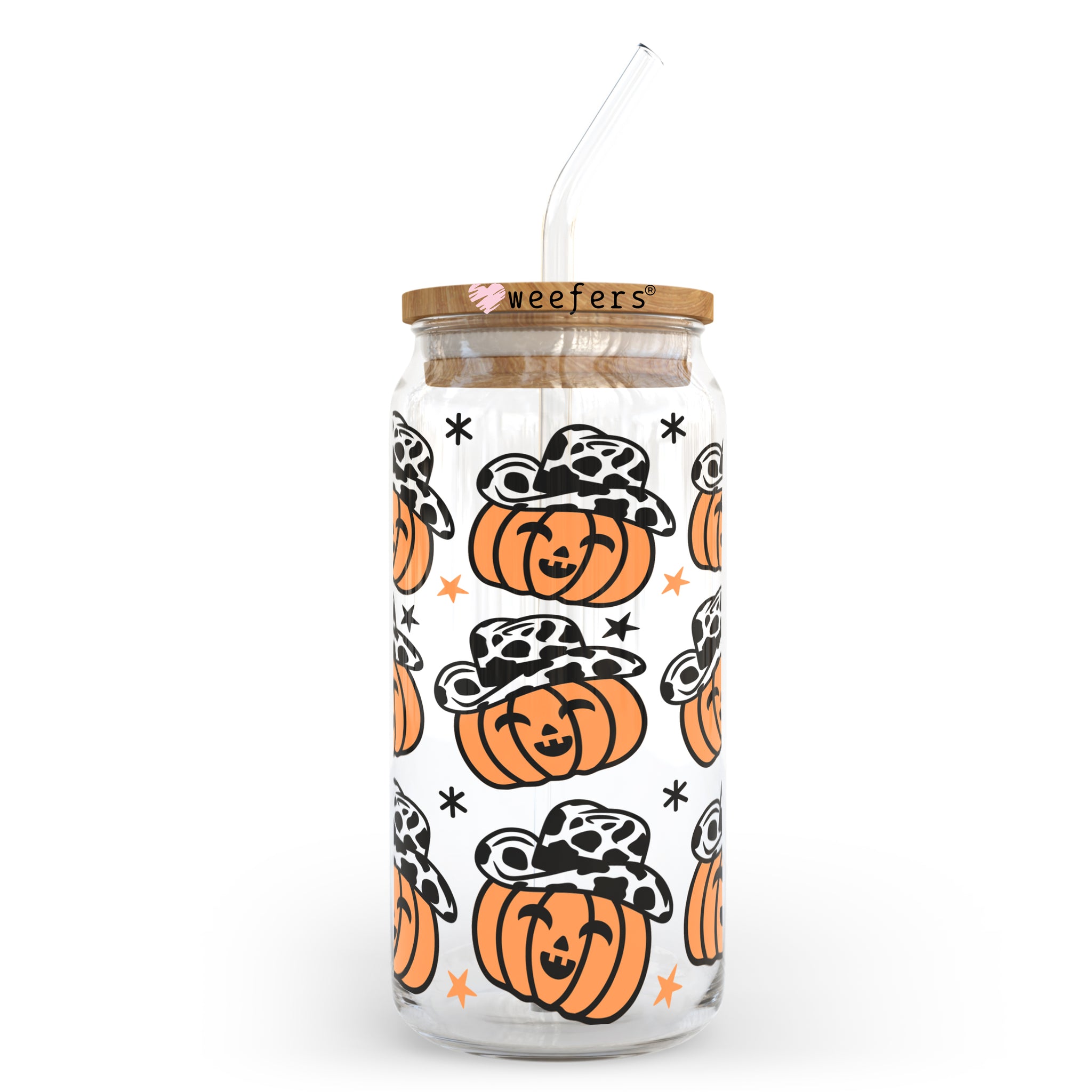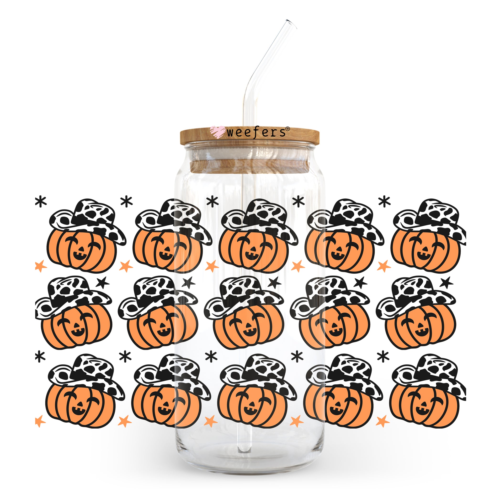 Happy Cowboy Pumpkins Halloween 20oz Libbey Glass Can, 34oz Hip Sip, 40oz Tumbler UV DTF or Sublimation Decal Transfer