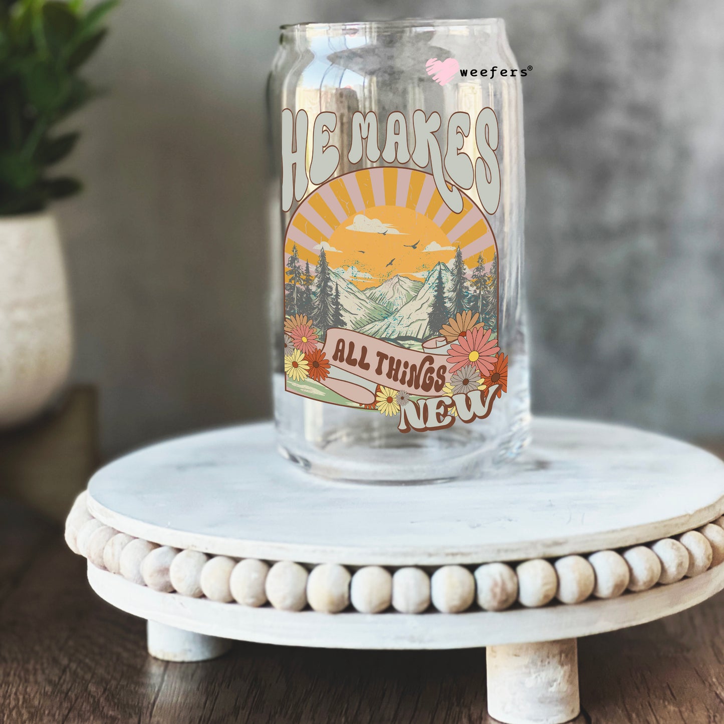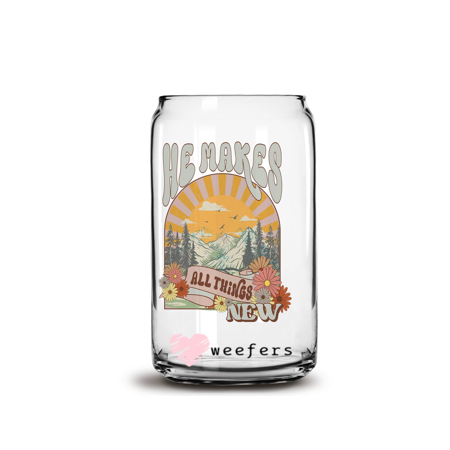 He makes all things new Christian 16oz Libbey Glass Can UV DTF or Sublimation Wrap - Decal