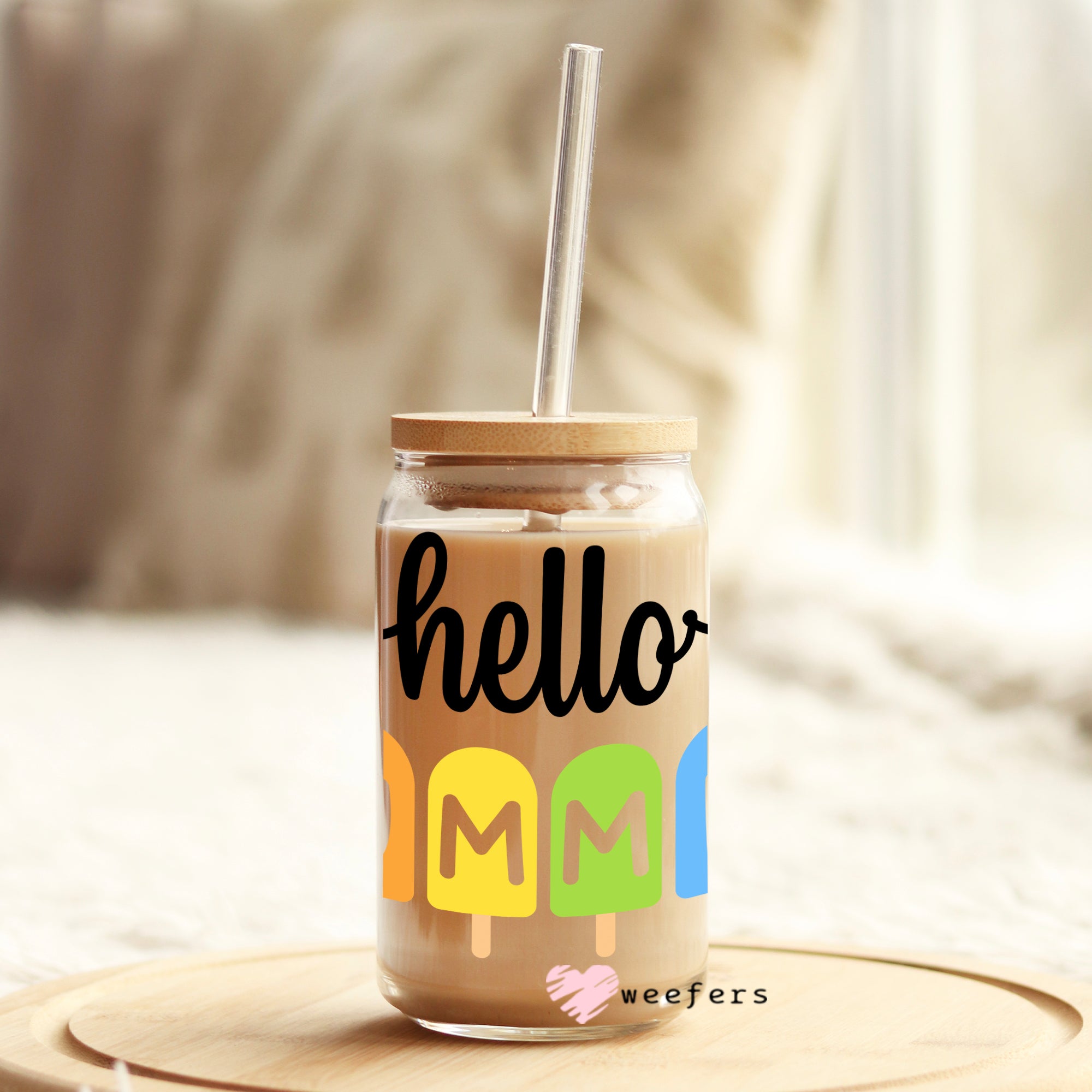 Hello Summer Popsicles 16oz Libbey Glass Can UV DTF or Sublimation Wrap - Decal Description