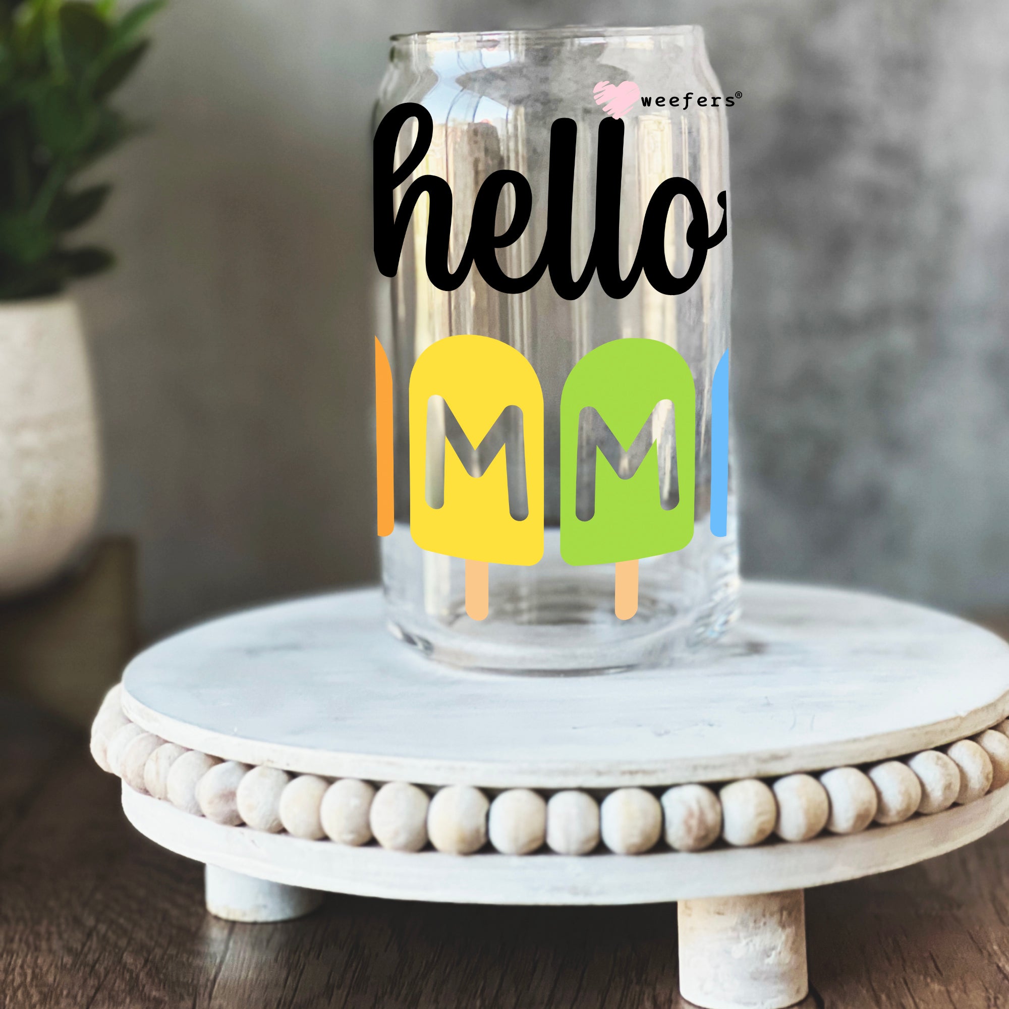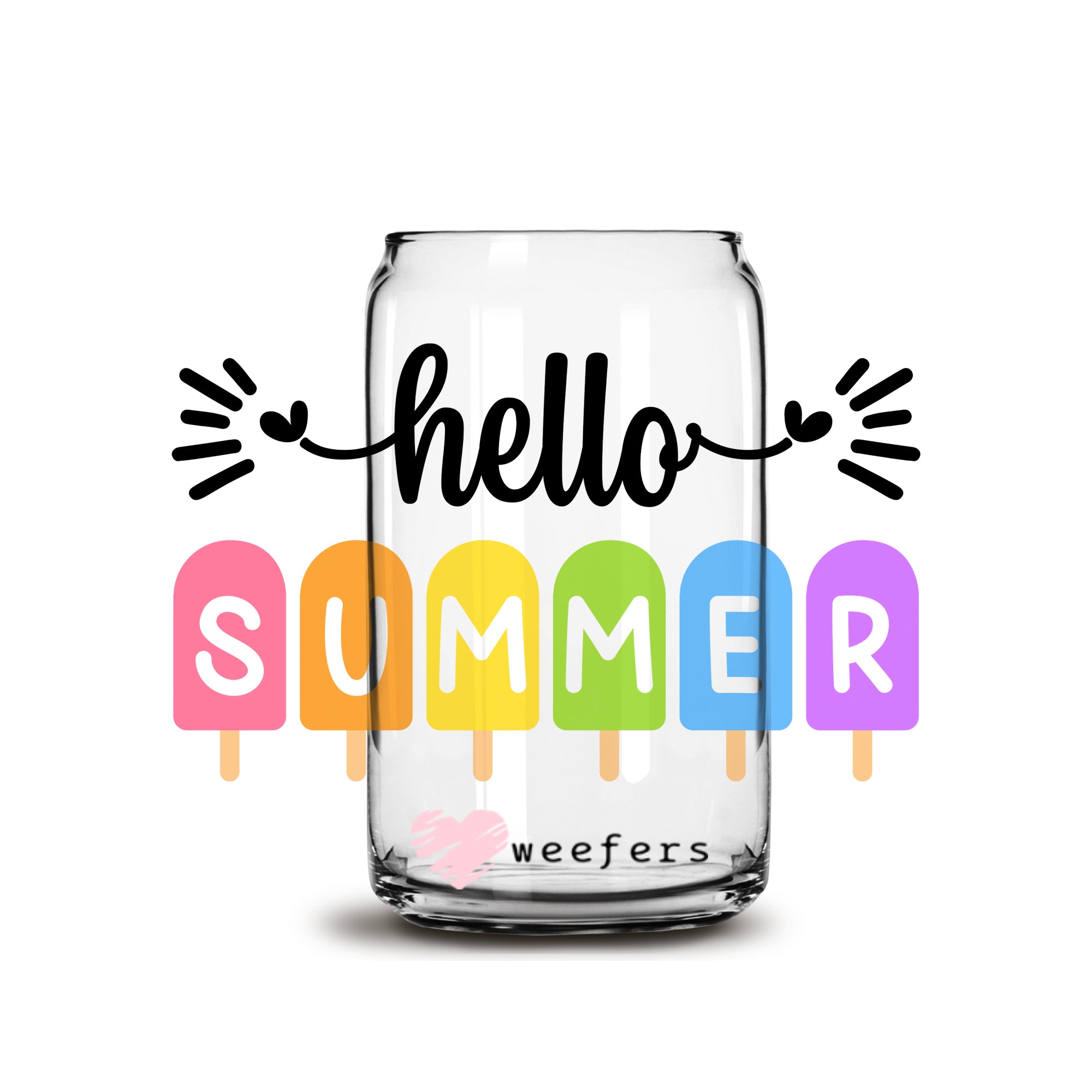 Hello Summer Popsicles 16oz Libbey Glass Can UV DTF or Sublimation Wrap - Decal