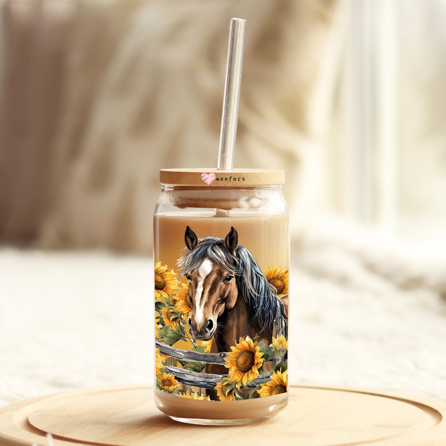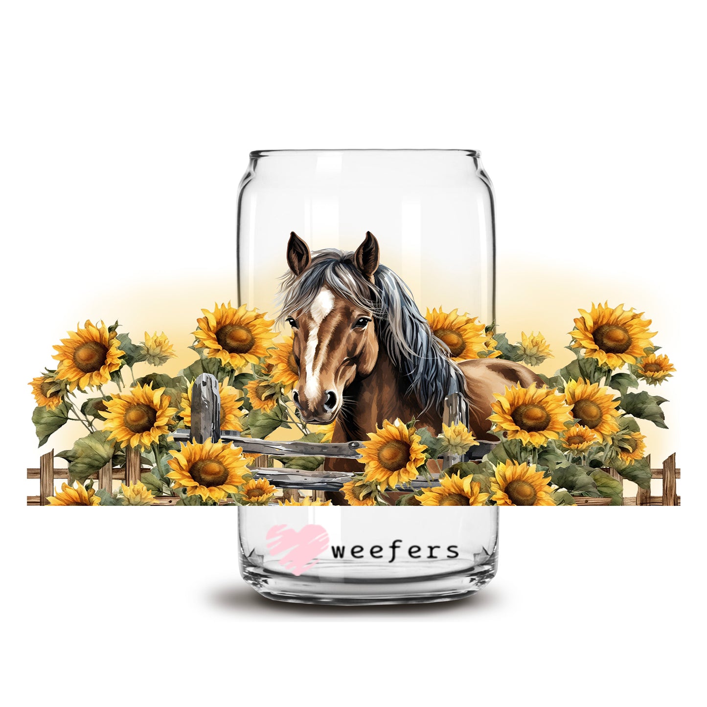 Horse Sunflowers 16oz Libbey Glass Can UV DTF or Sublimation Wrap - Transfer Description
