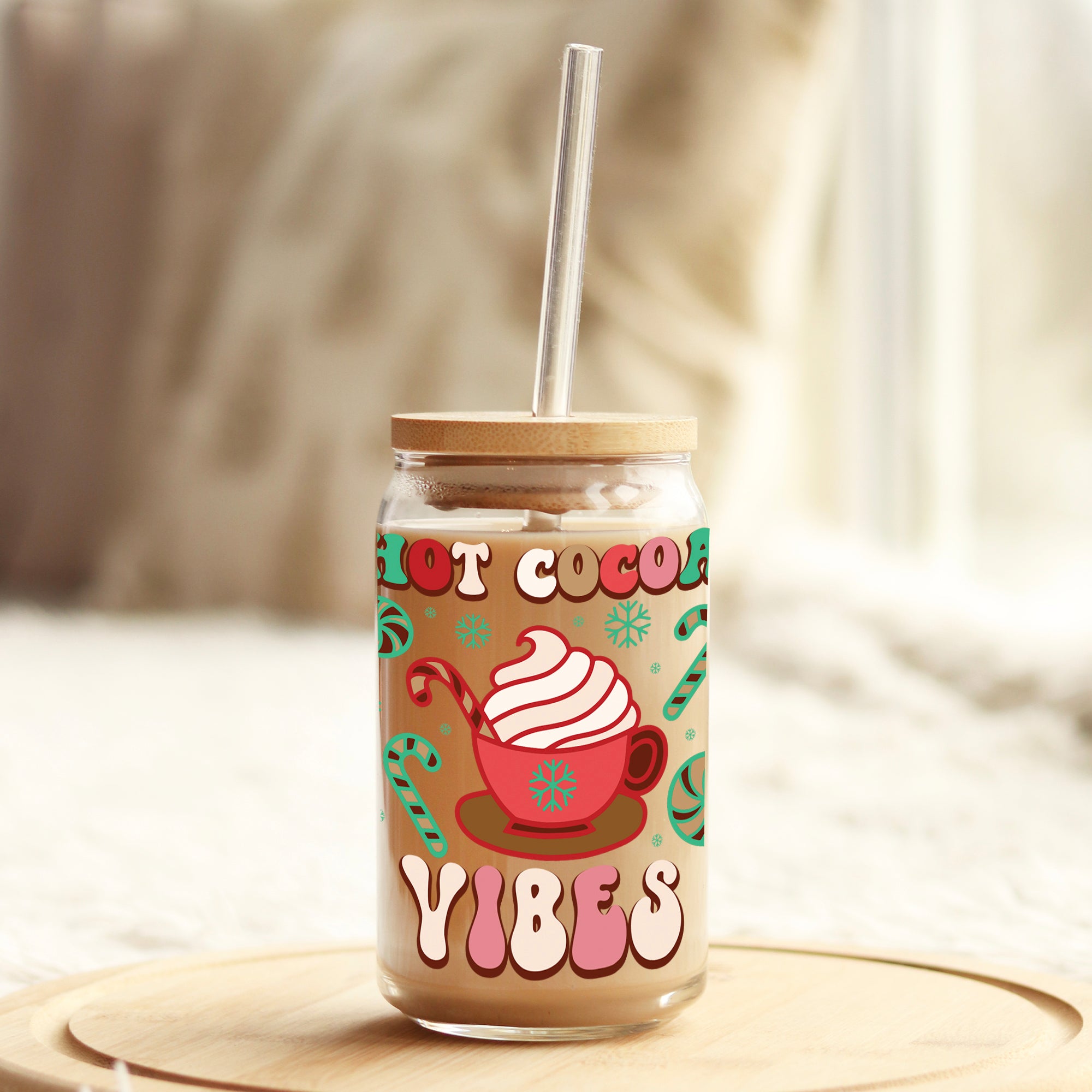 Hot Cocoa Vibes 16oz Libbey Glass Can UV DTF or Sublimation Wrap - Decal Transfer