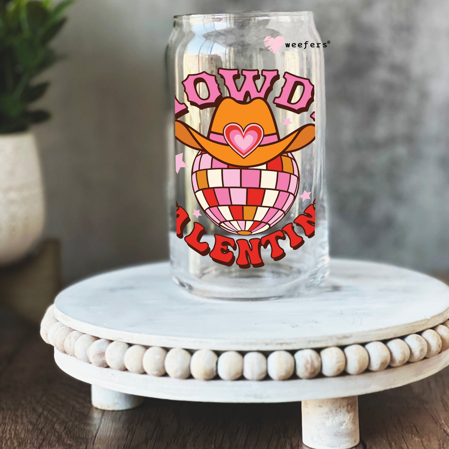 Howdy Valentine Disco Ball Valentine's Day 16oz Libbey Glass Can UV DTF or Sublimation Cup Wrap - Decal Transfer Description