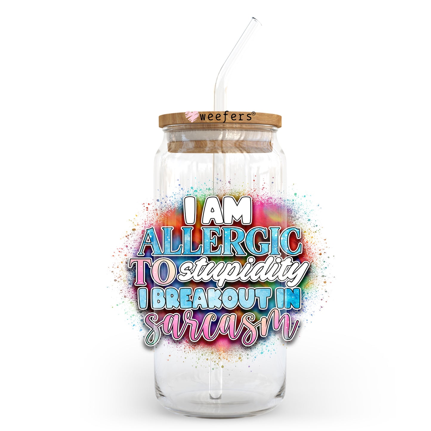 I am Allergic to Stupidity I Breakout in Sarcasm 20oz Libbey Glass Can UV DTF or Sublimation Wrap - Decal Transfer Description