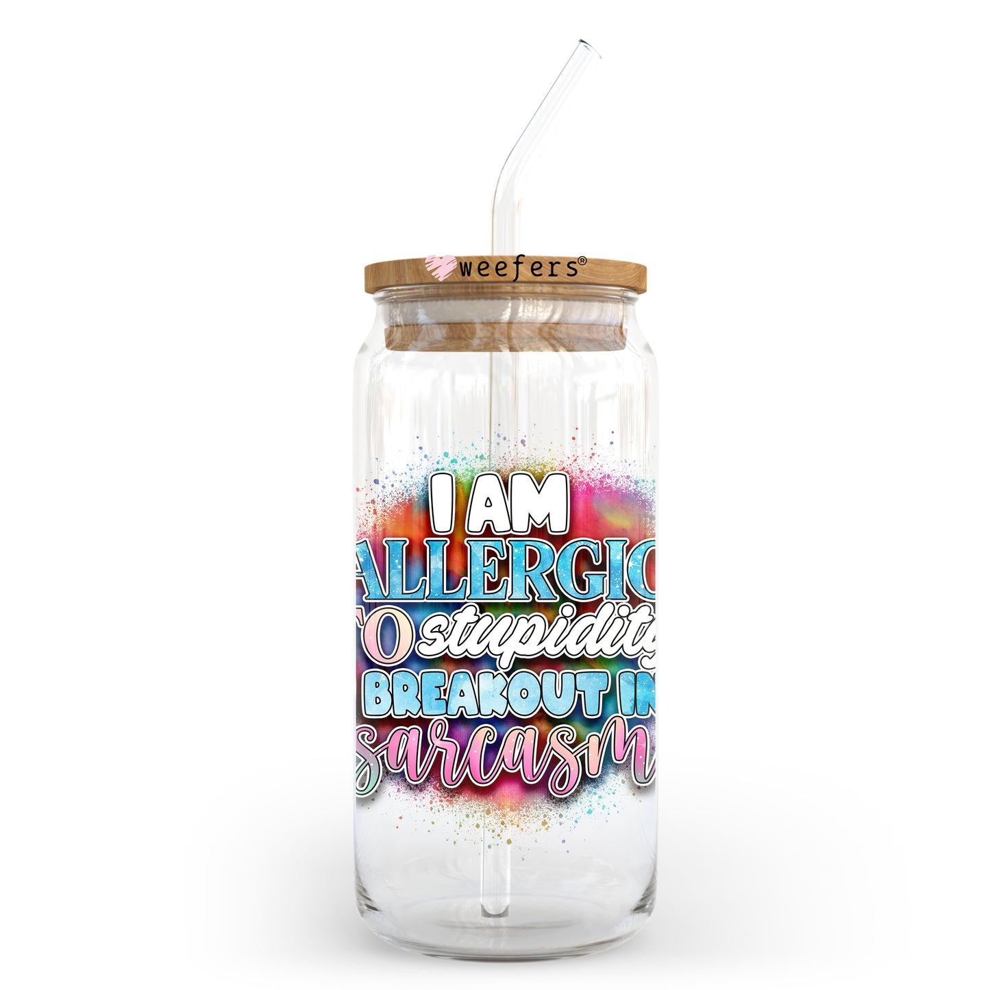 I am Allergic to Stupidity I Breakout in Sarcasm 20oz Libbey Glass Can UV DTF or Sublimation Wrap - Decal Transfer