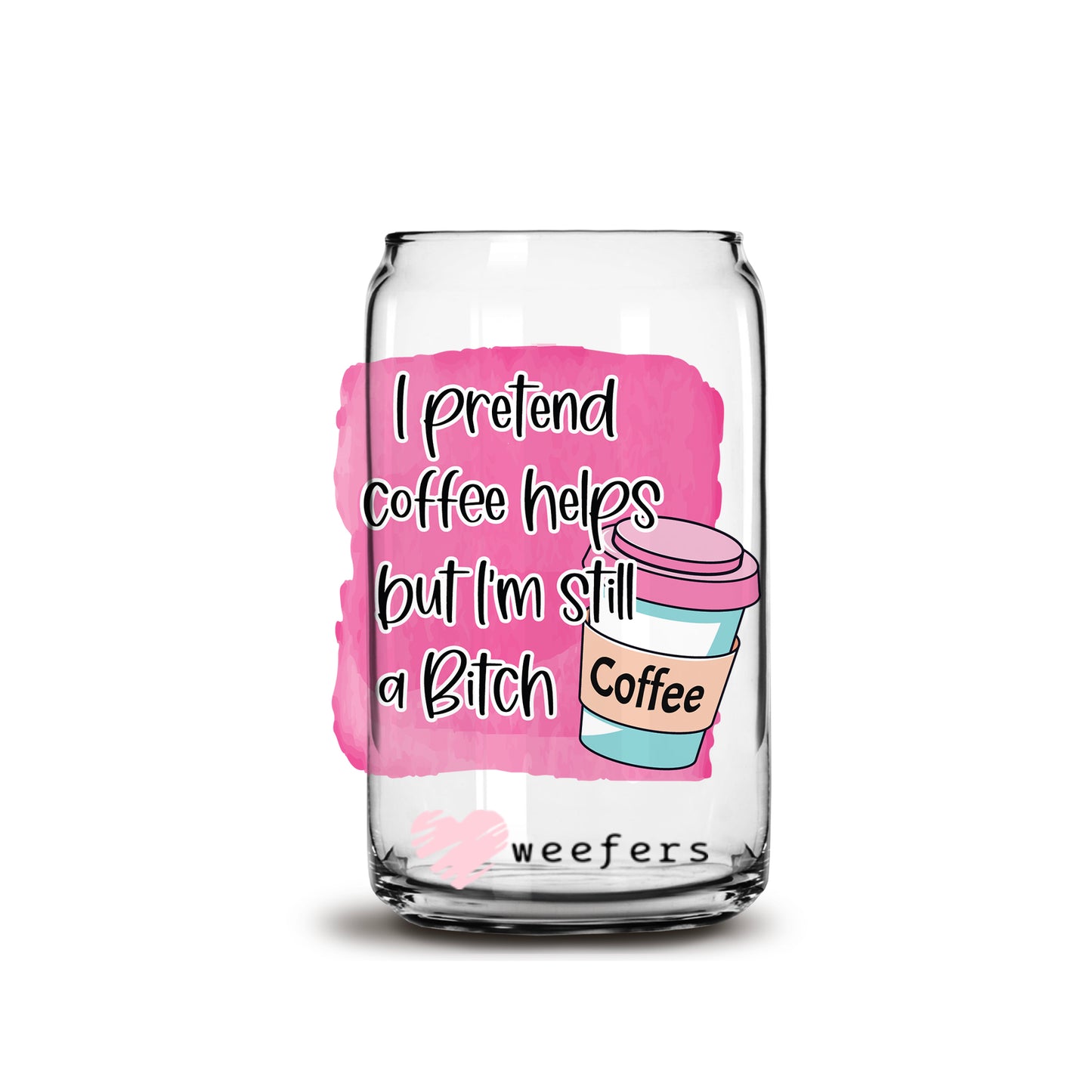 I pretend coffee helps but I'm still a b$tch 16oz Libbey Glass Can UV DTF or Sublimation Wrap - Decal