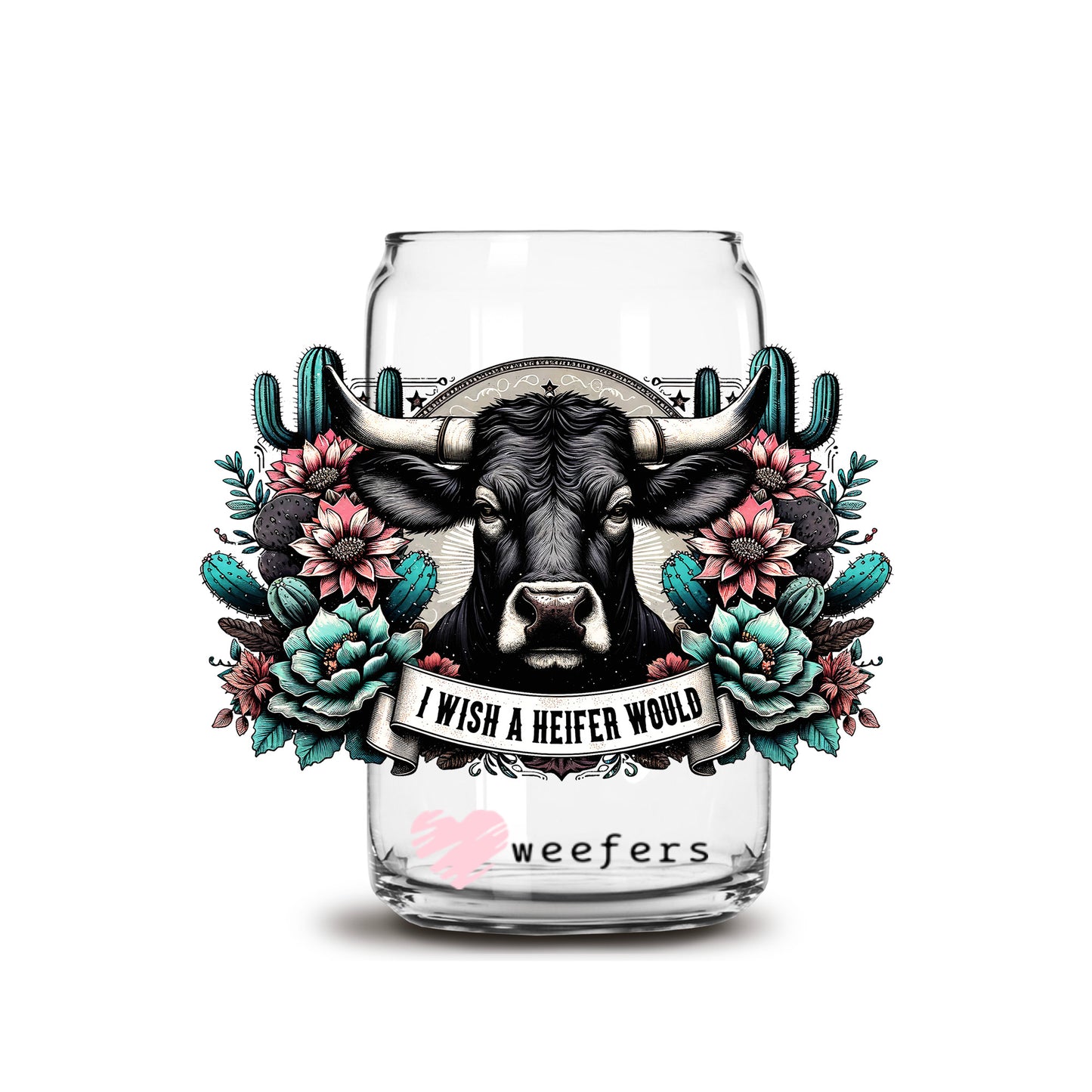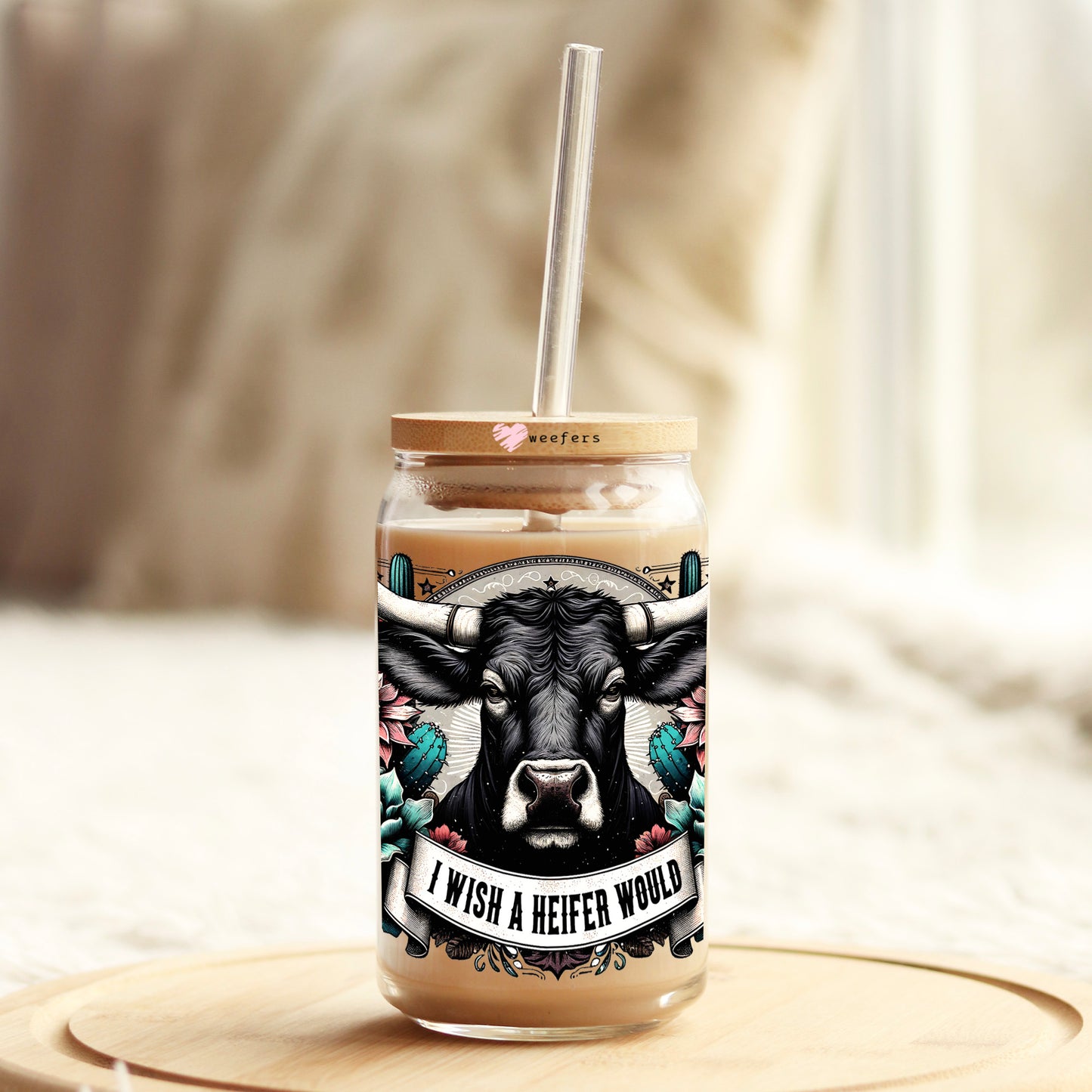 I Wish a Heifer Would 16oz Libbey Glass Can UV DTF or Sublimation Decal Transfer