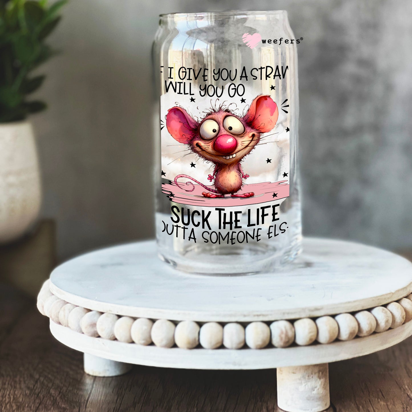If I Give You a Straw will You go Suck the Life Our of Someone Else 16oz Libbey Glass Can UV DTF or Sublimation Wrap - Decal