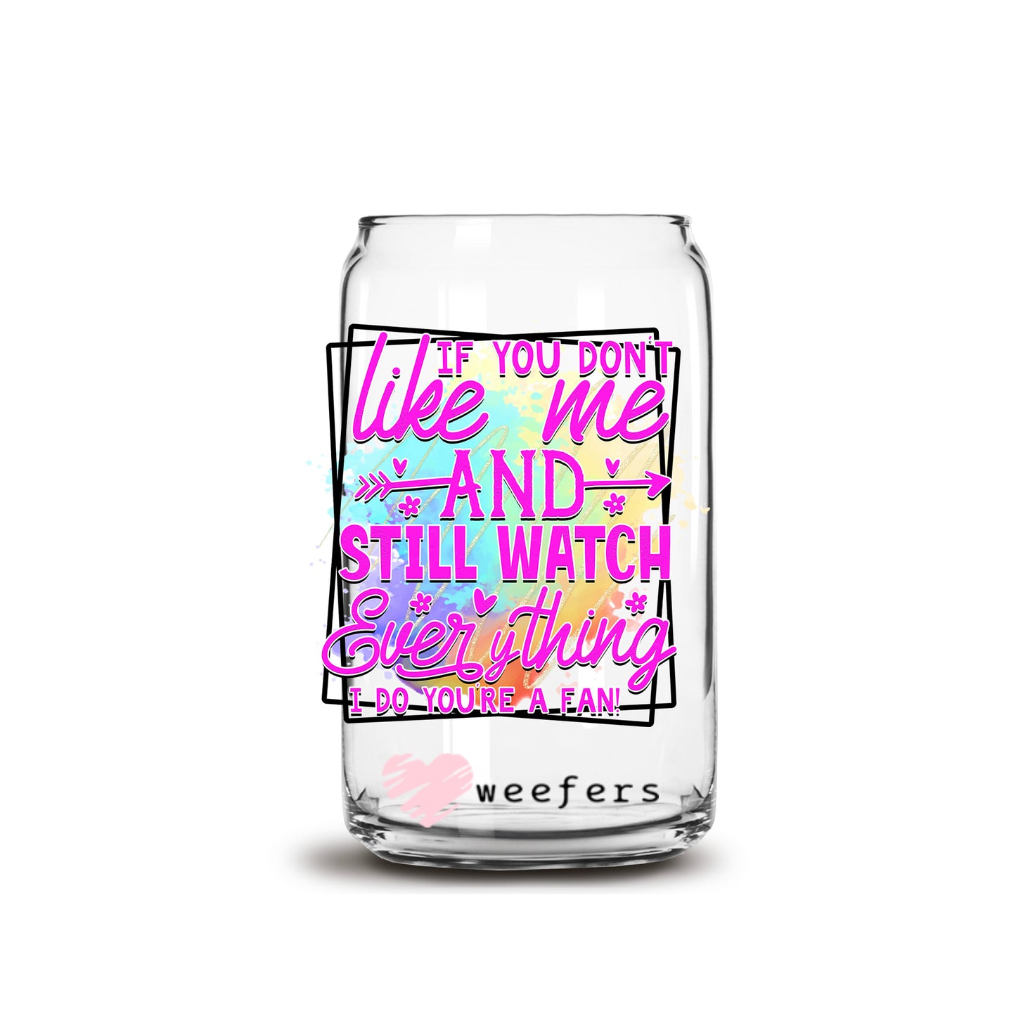 If You Don't Like me and Still Watch Everything I Do You're a Fan 16oz Libbey Glass Can UV DTF or Sublimation Wrap - Decal