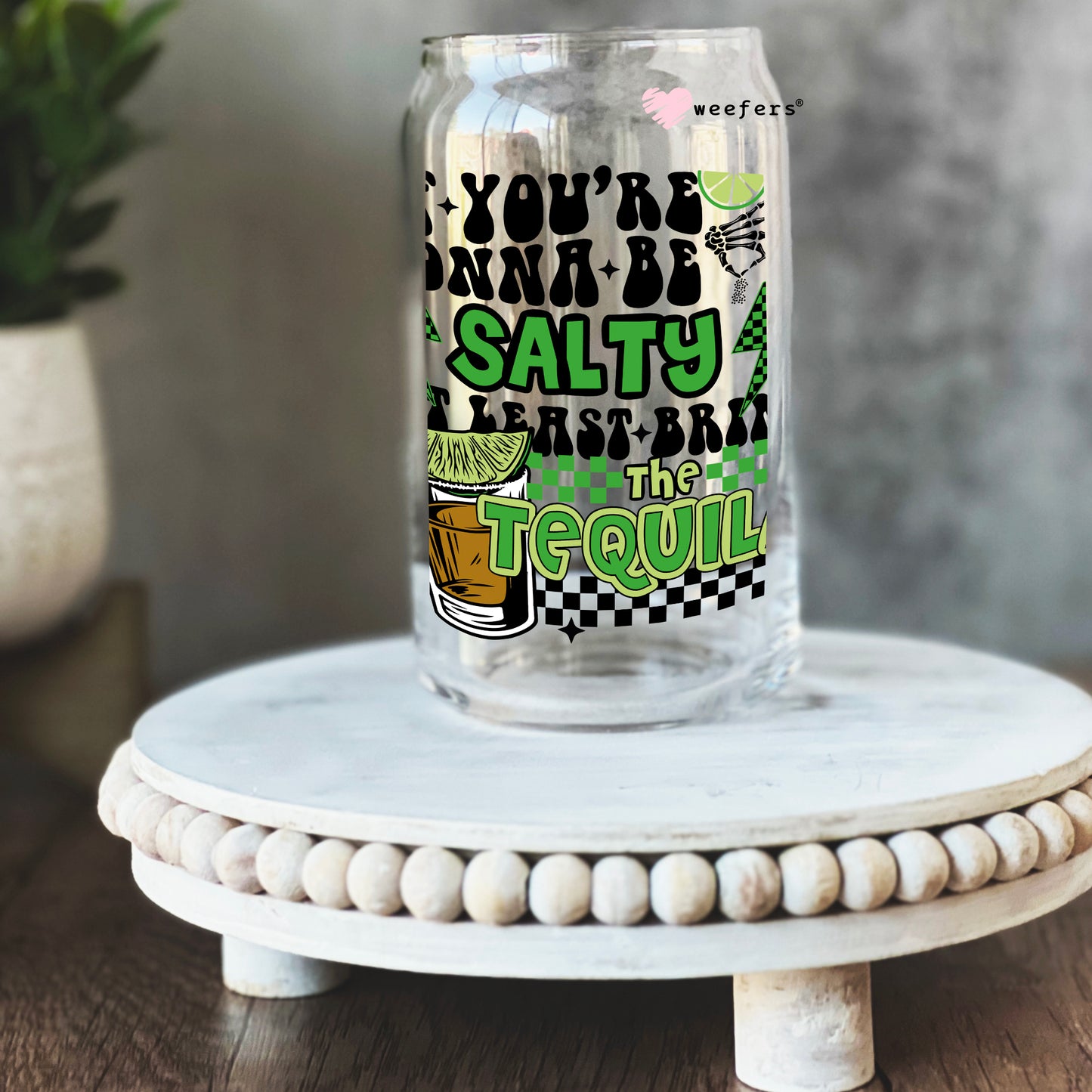 If you're going to be salty at least bring Tequila 16oz Libbey Glass Can UV DTF or Sublimation Wrap - Decal Description