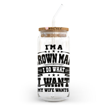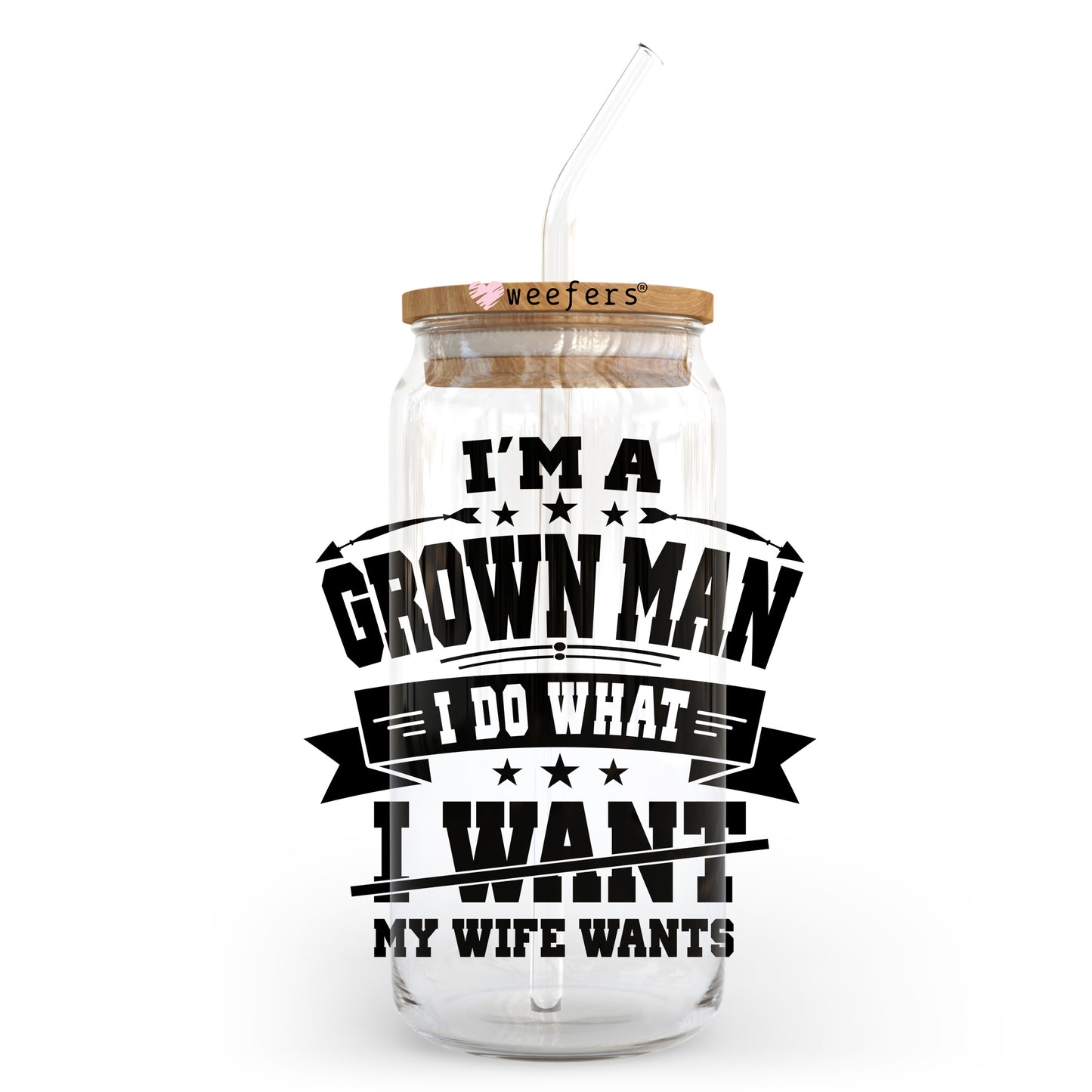 I'm A Grown Man I Do What I Want My Wife Wants 20oz Libbey Glass Can UV DTF or Sublimation Wrap - Decal Transfer