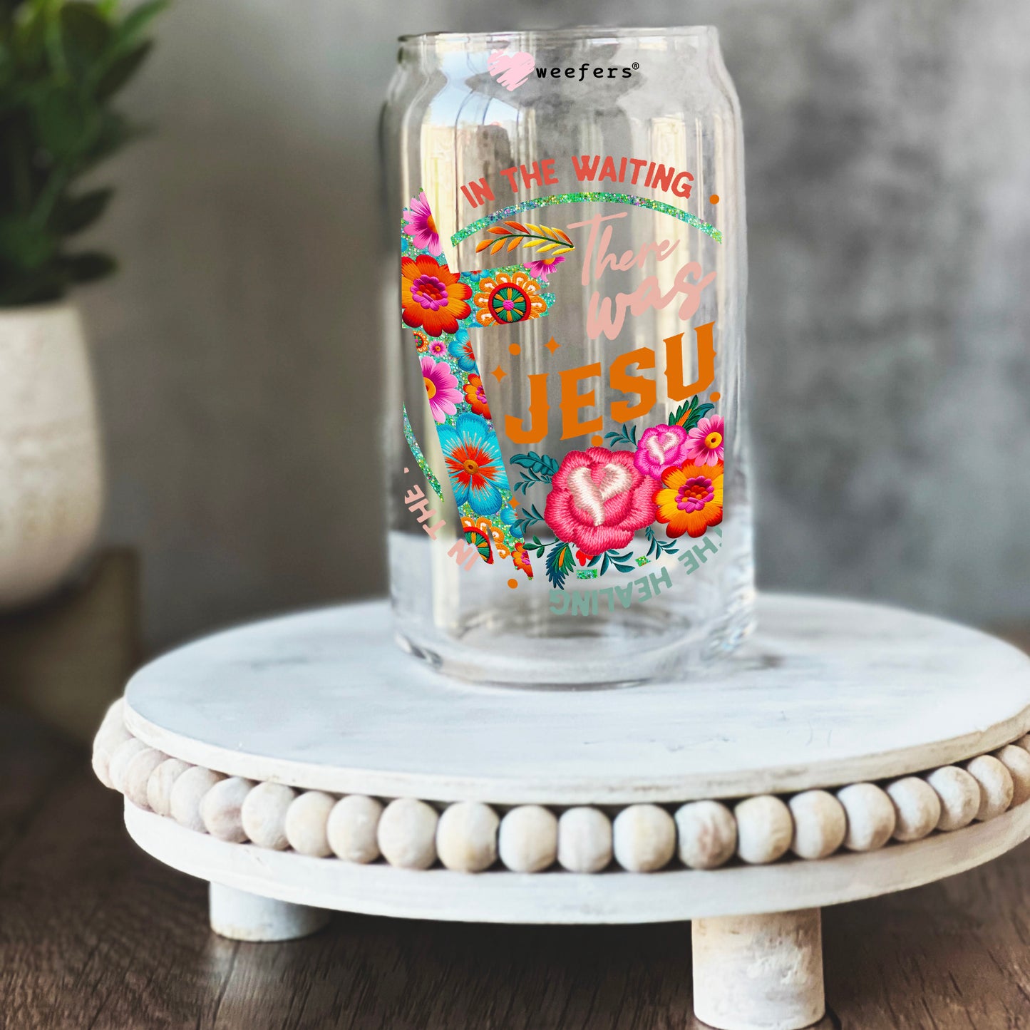 In the Waiting there was Jesus 16oz Libbey Glass Can UV DTF or Sublimation Wrap - Decal Transfer