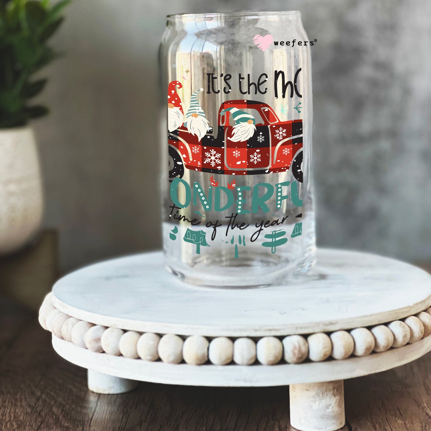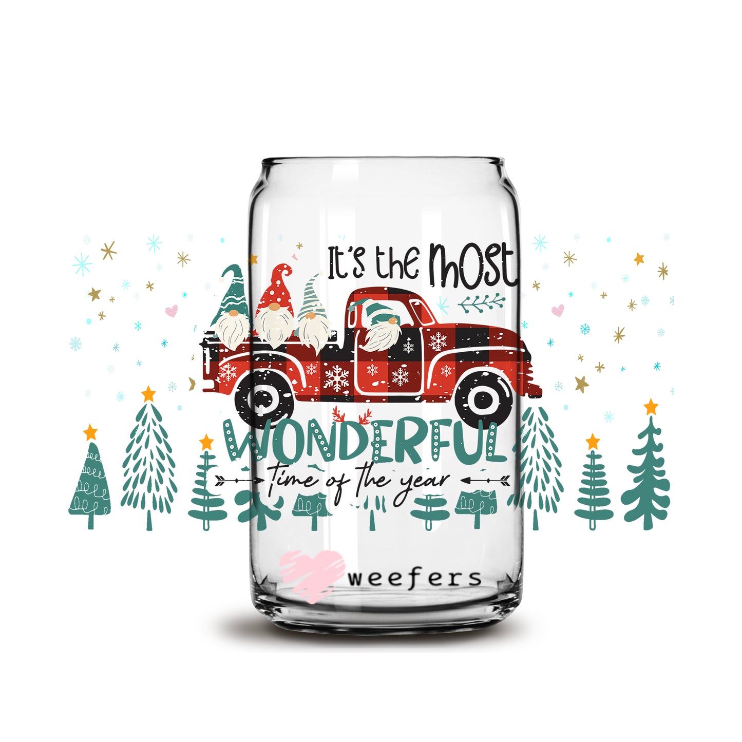 It's the Most Wonderful Time of the Year Truck Christmas 16oz Libbey Glass Can UV DTF or Sublimation Wrap - Decal