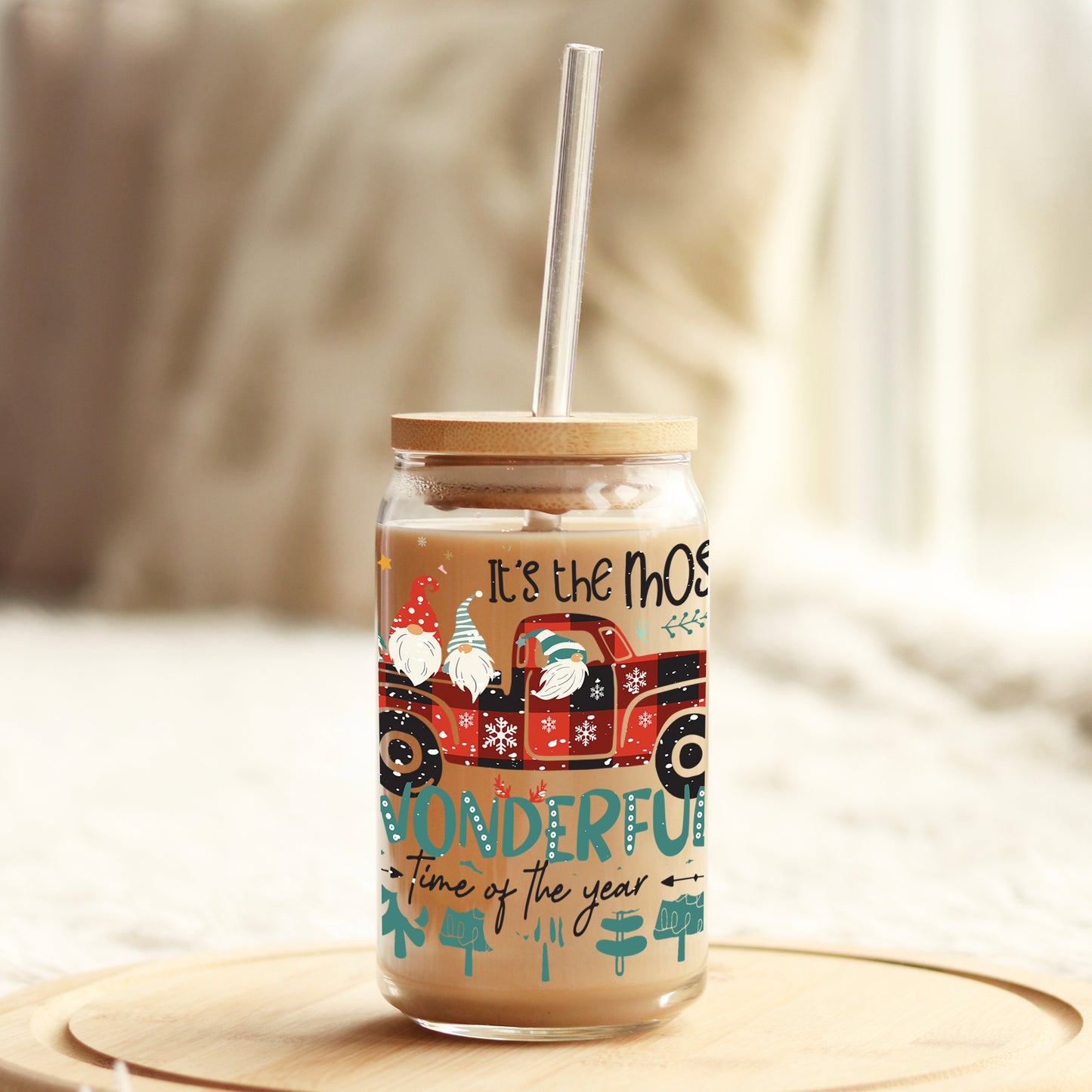 It's the Most Wonderful Time of the Year Truck Christmas 16oz Libbey Glass Can UV DTF or Sublimation Wrap - Decal Description