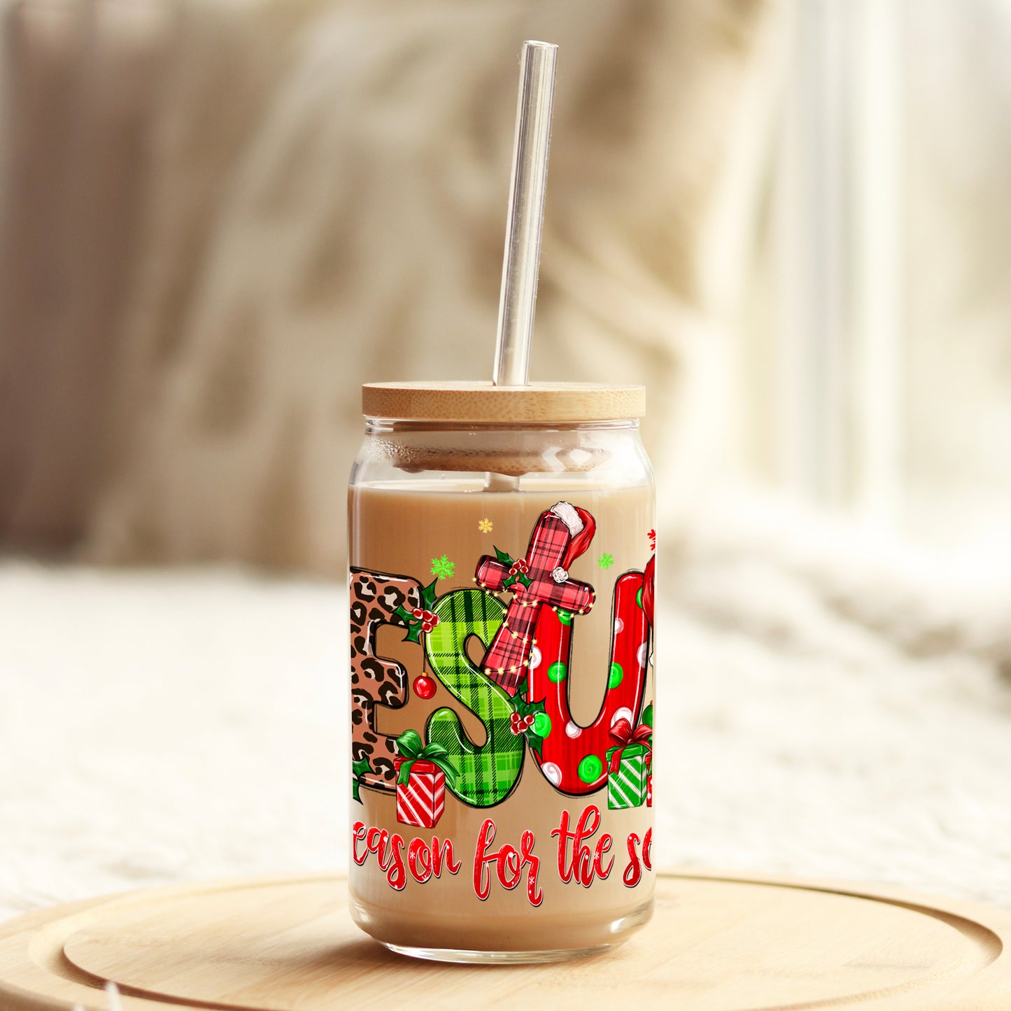 Jesus the Reason for the Season 16oz Libbey Glass Can UV DTF or Sublimation Wrap - Decal