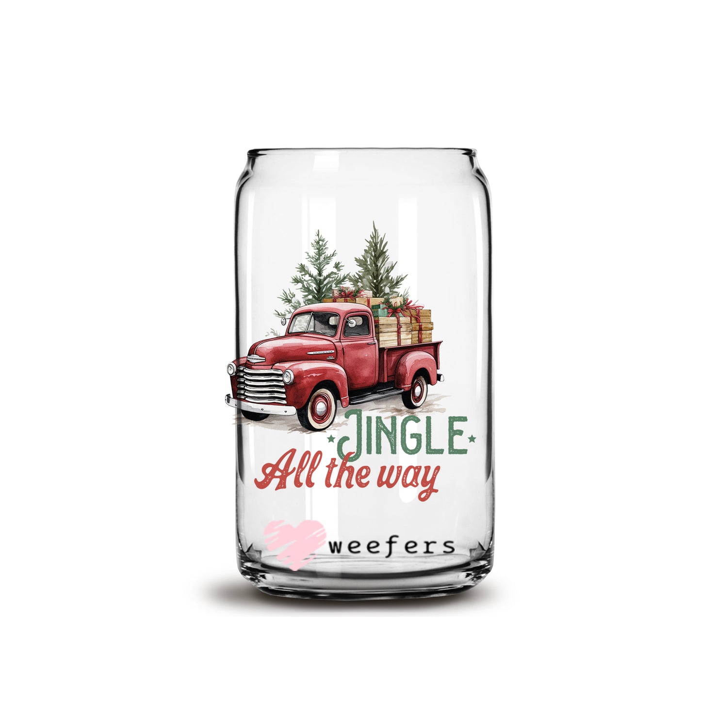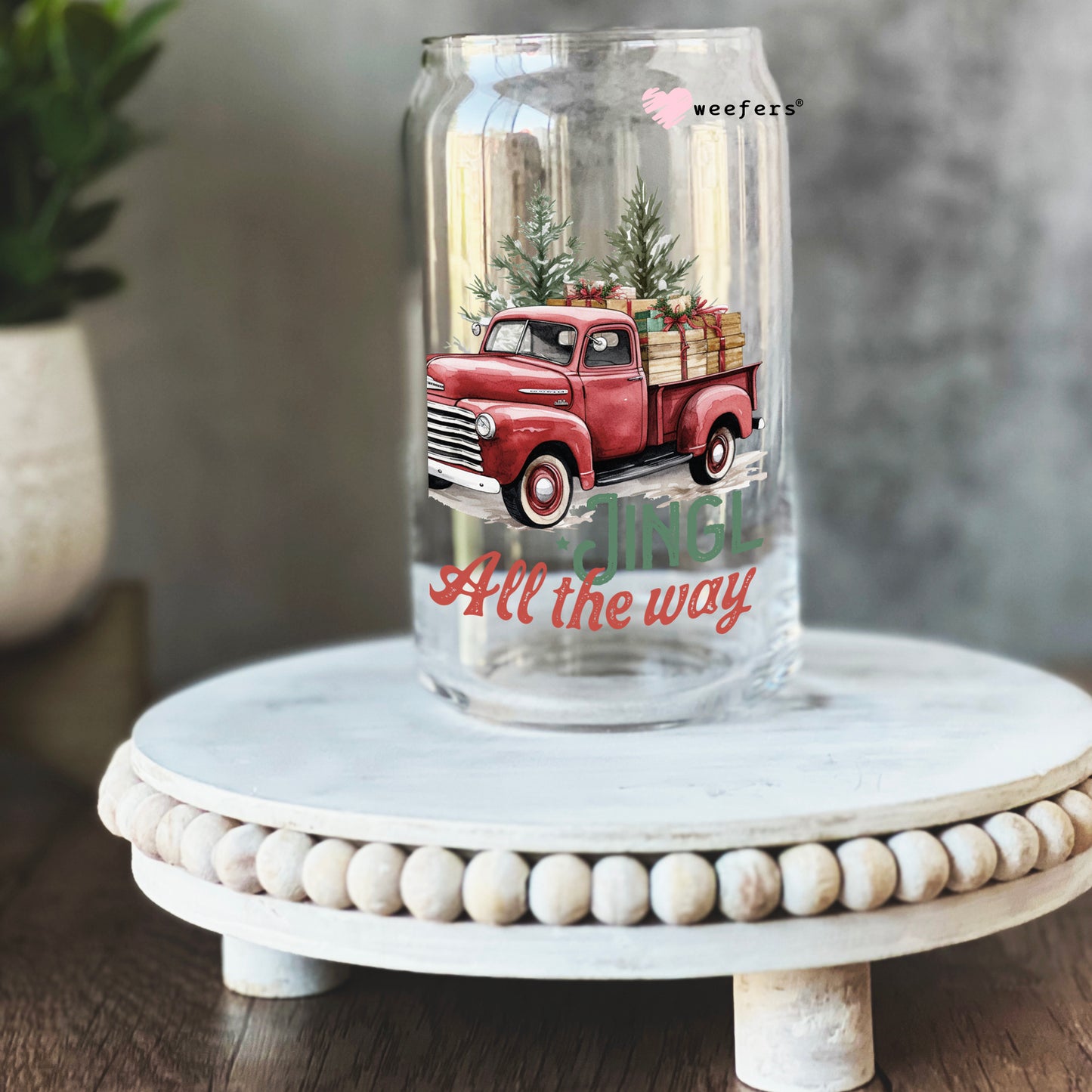 Jingle all the Way Vintage Christmas Truck 16oz Libbey Glass Can UV DTF or Sublimation Wrap - Decal