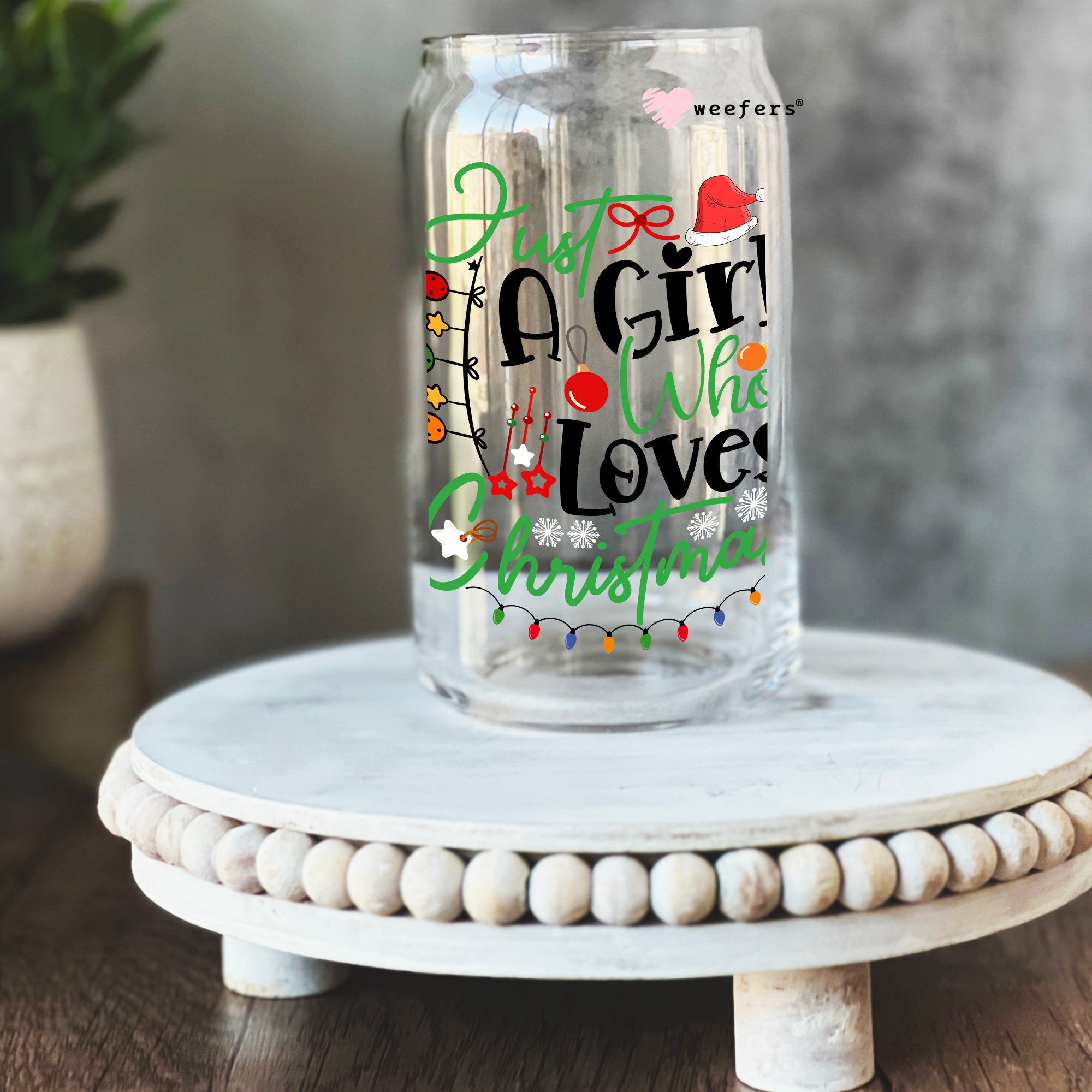 Just a Girl that Loves Christmas 16oz Libbey Glass Can UV DTF or Sublimation Wrap - Decal