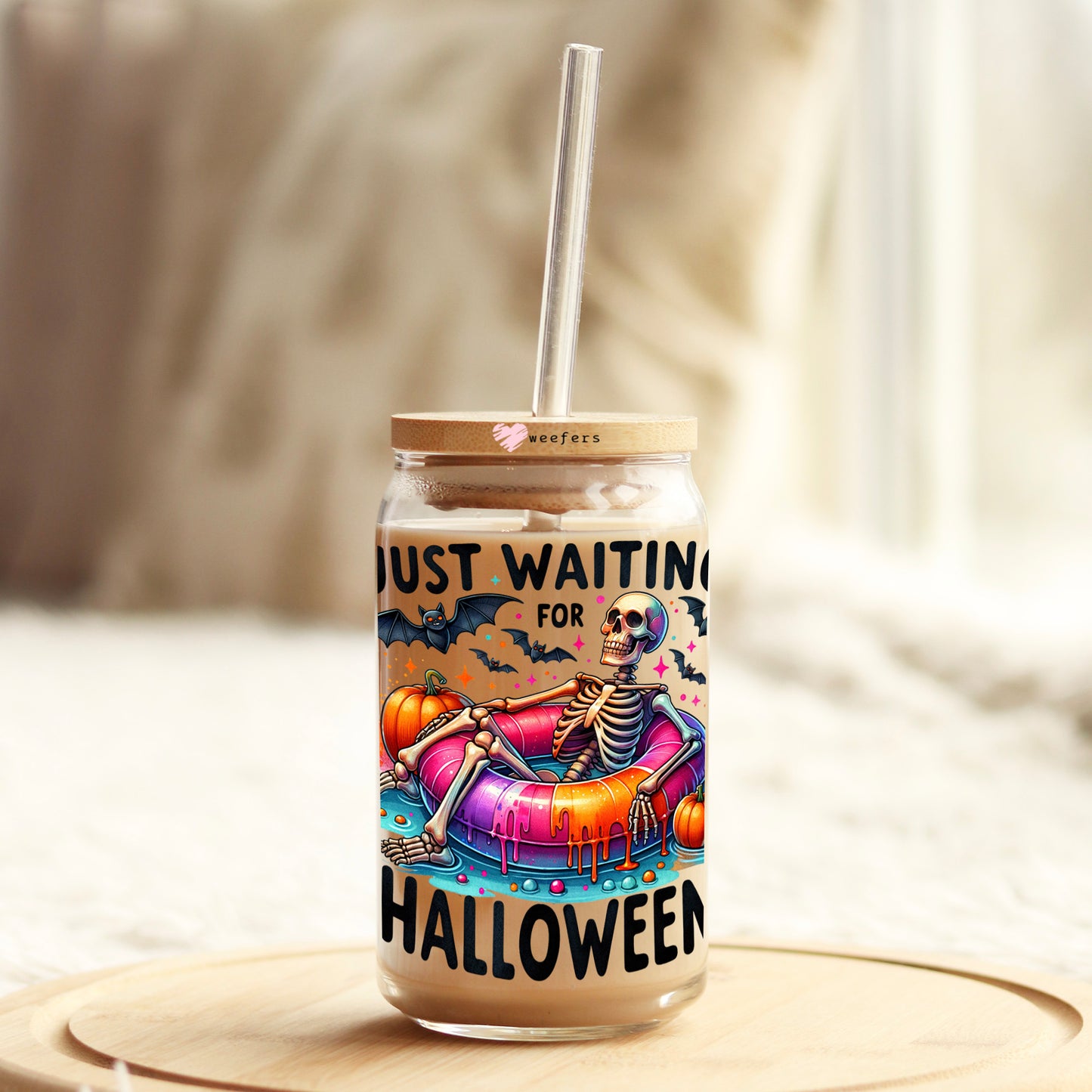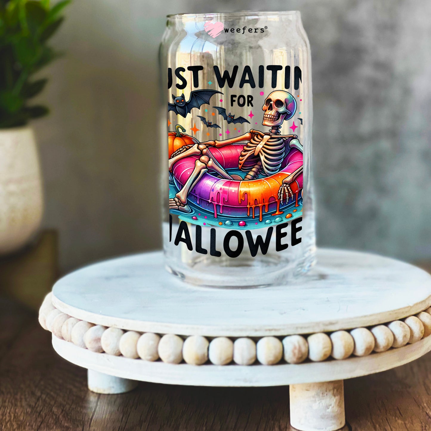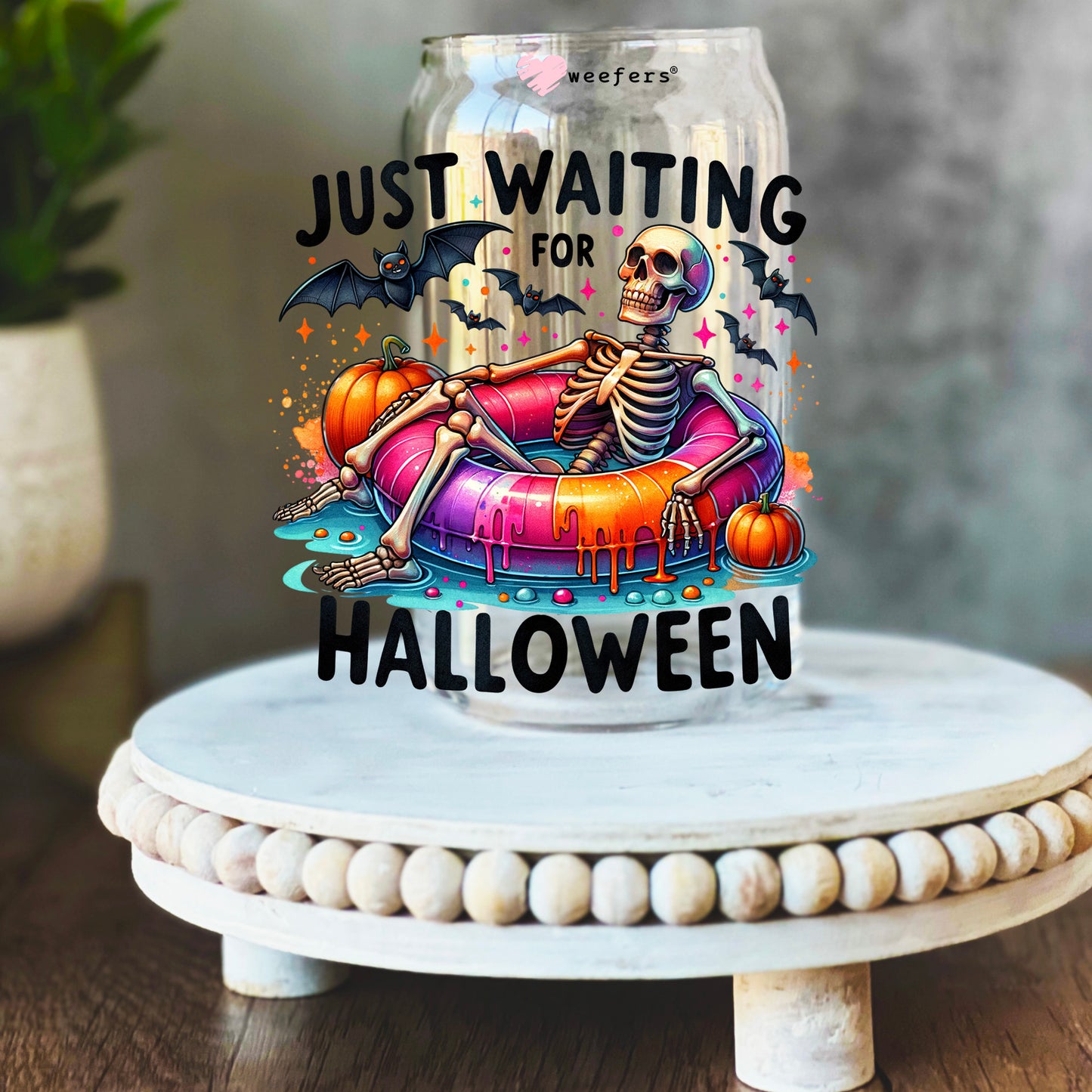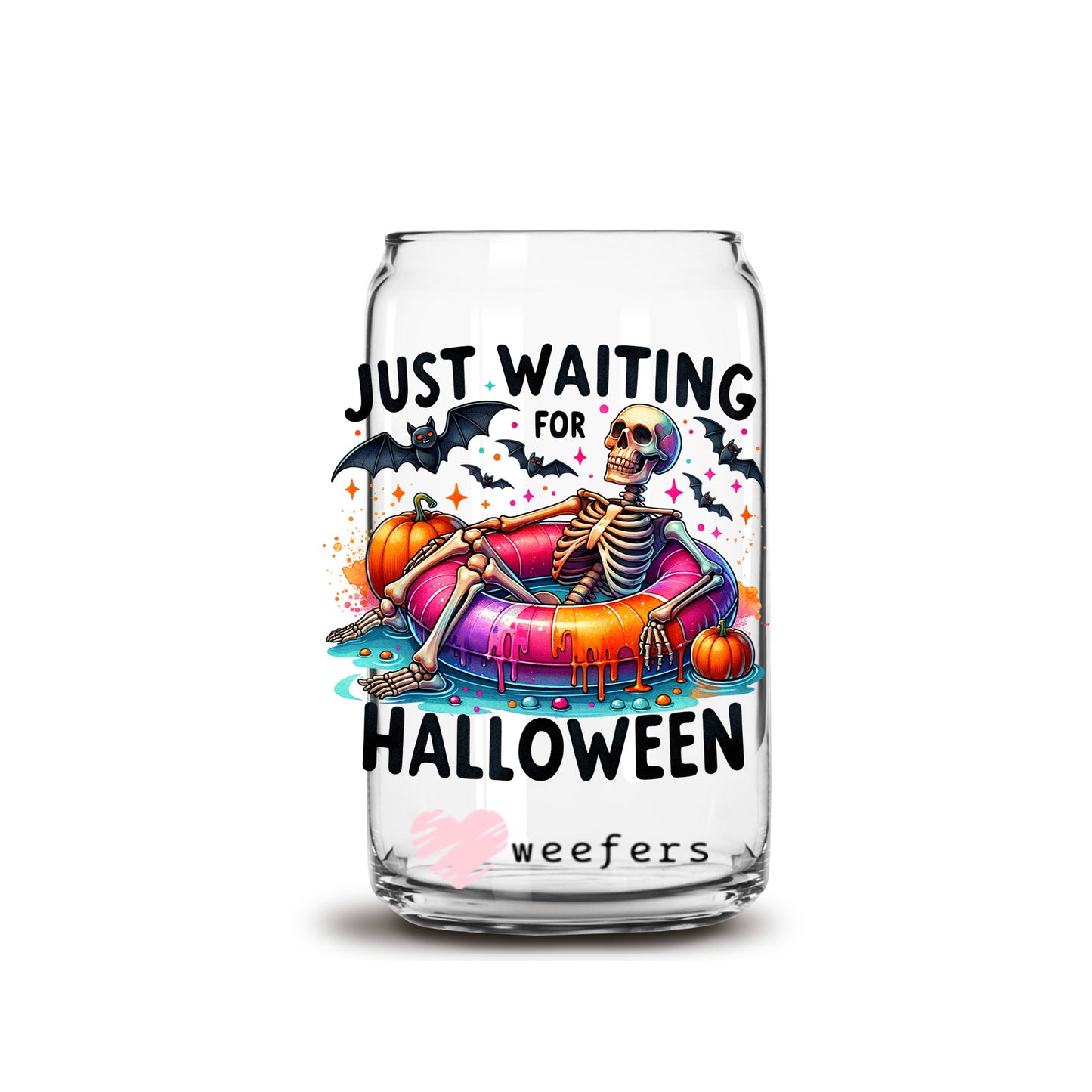 Just Waiting For Halloween 16oz Libbey Glass Can UV DTF or Sublimation Wrap Decal Transfer