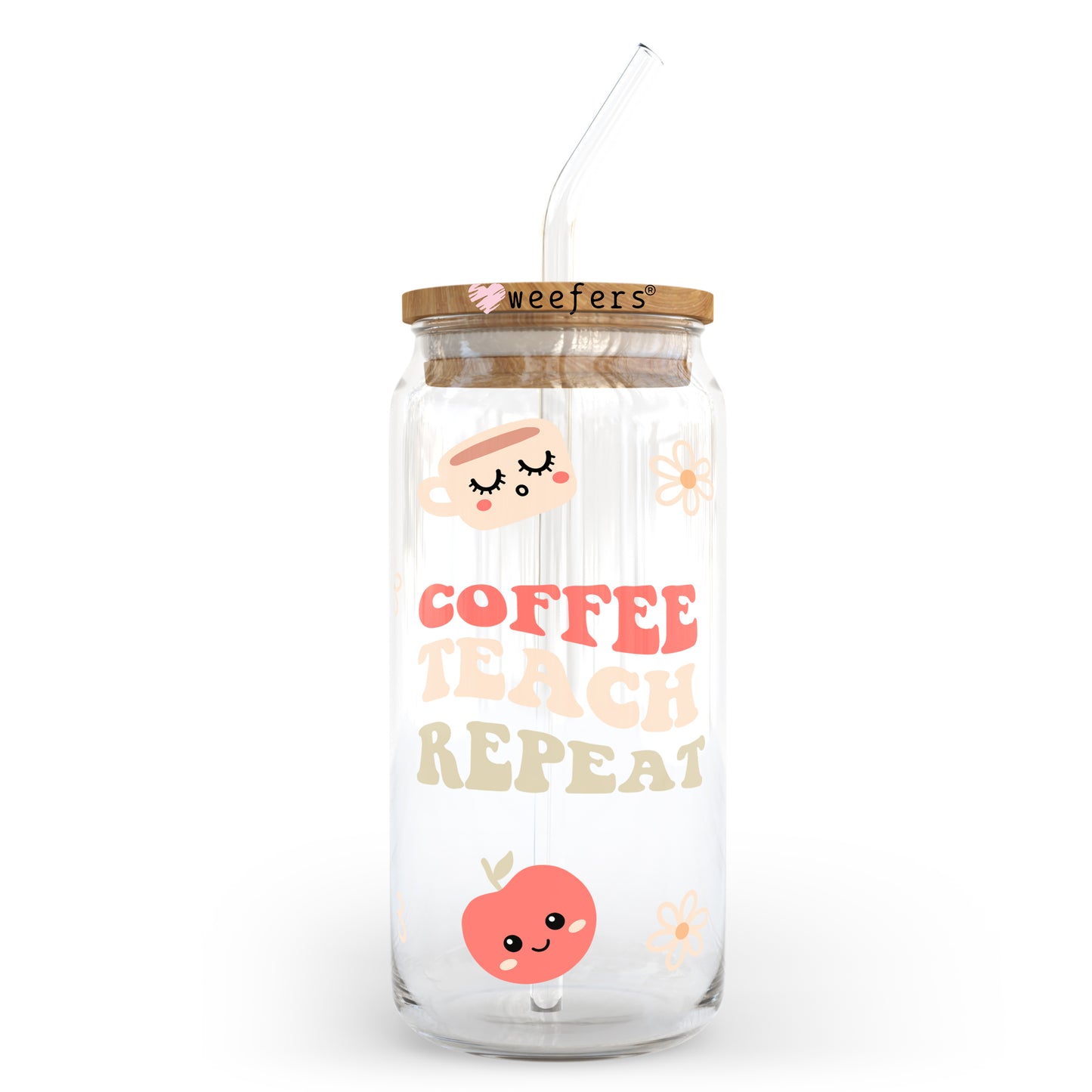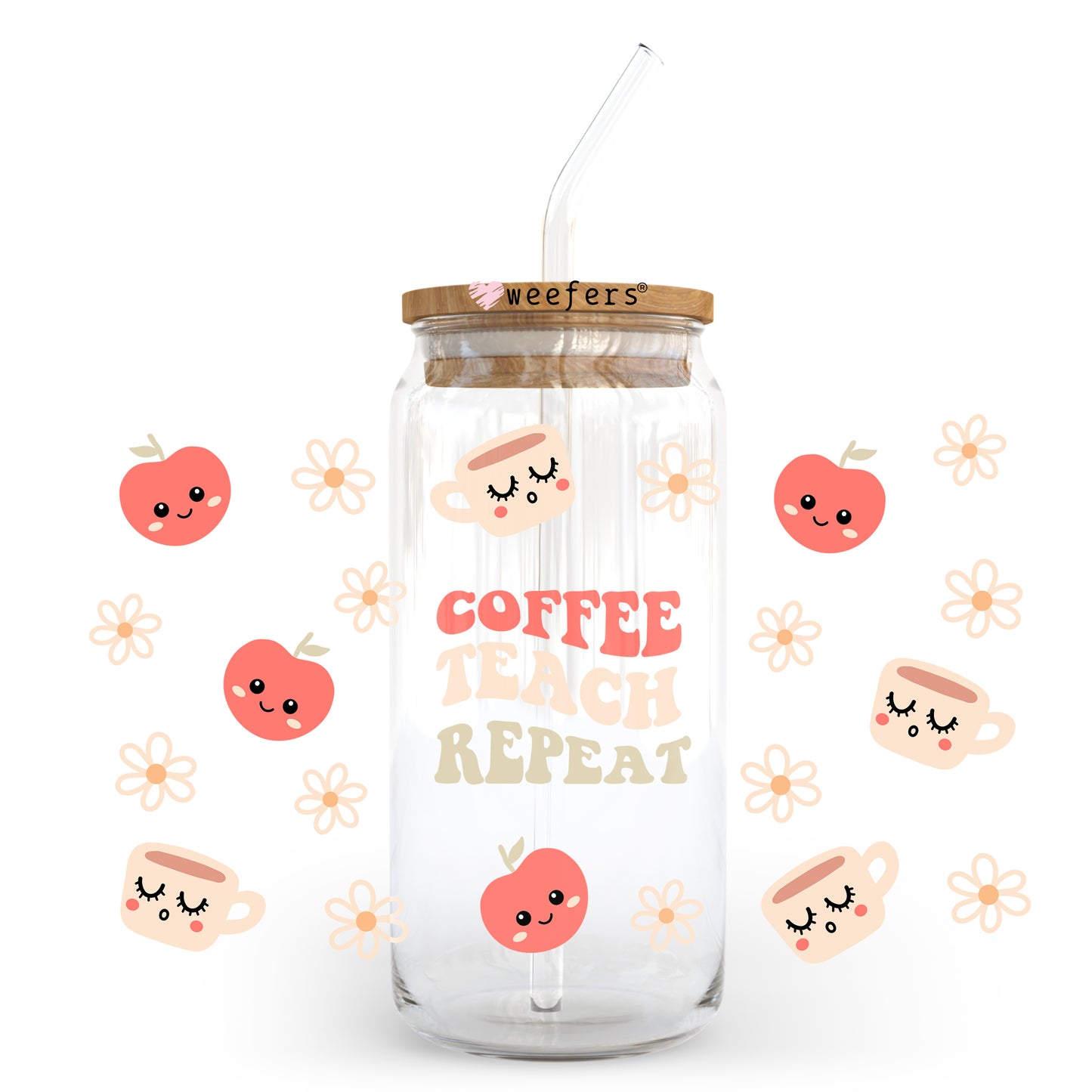 Kawaii Coffee Teach Repeat 20oz Libbey Glass Can UV DTF or Sublimation Wrap - Decal