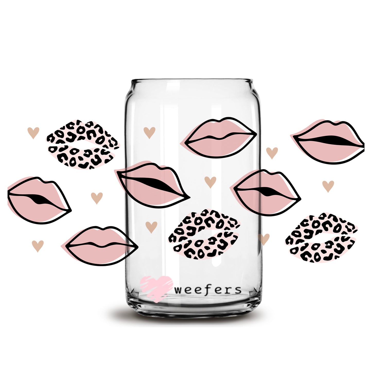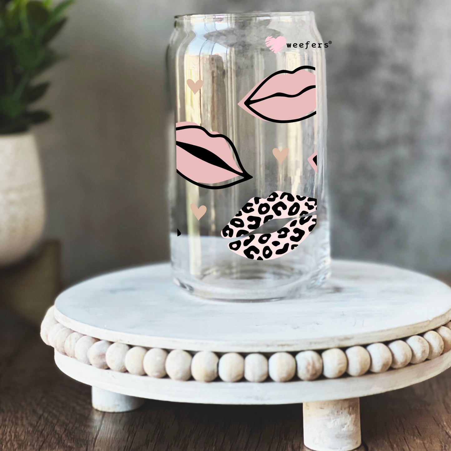 Leopard and Light Mauve Lips 16oz Libbey Glass Can UV DTF or Sublimation Wrap - Decal