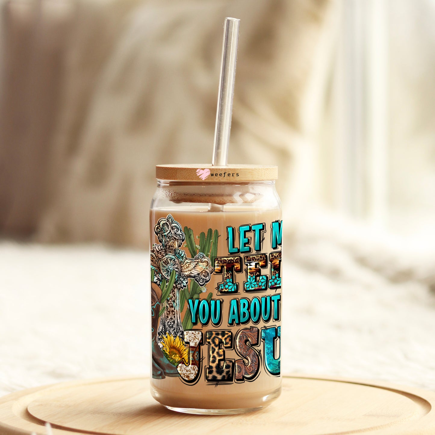 Let Me Tell You About My Jesus Western 16oz Libbey Glass Can UV DTF or Sublimation Cup Wrap - Decal Transfer