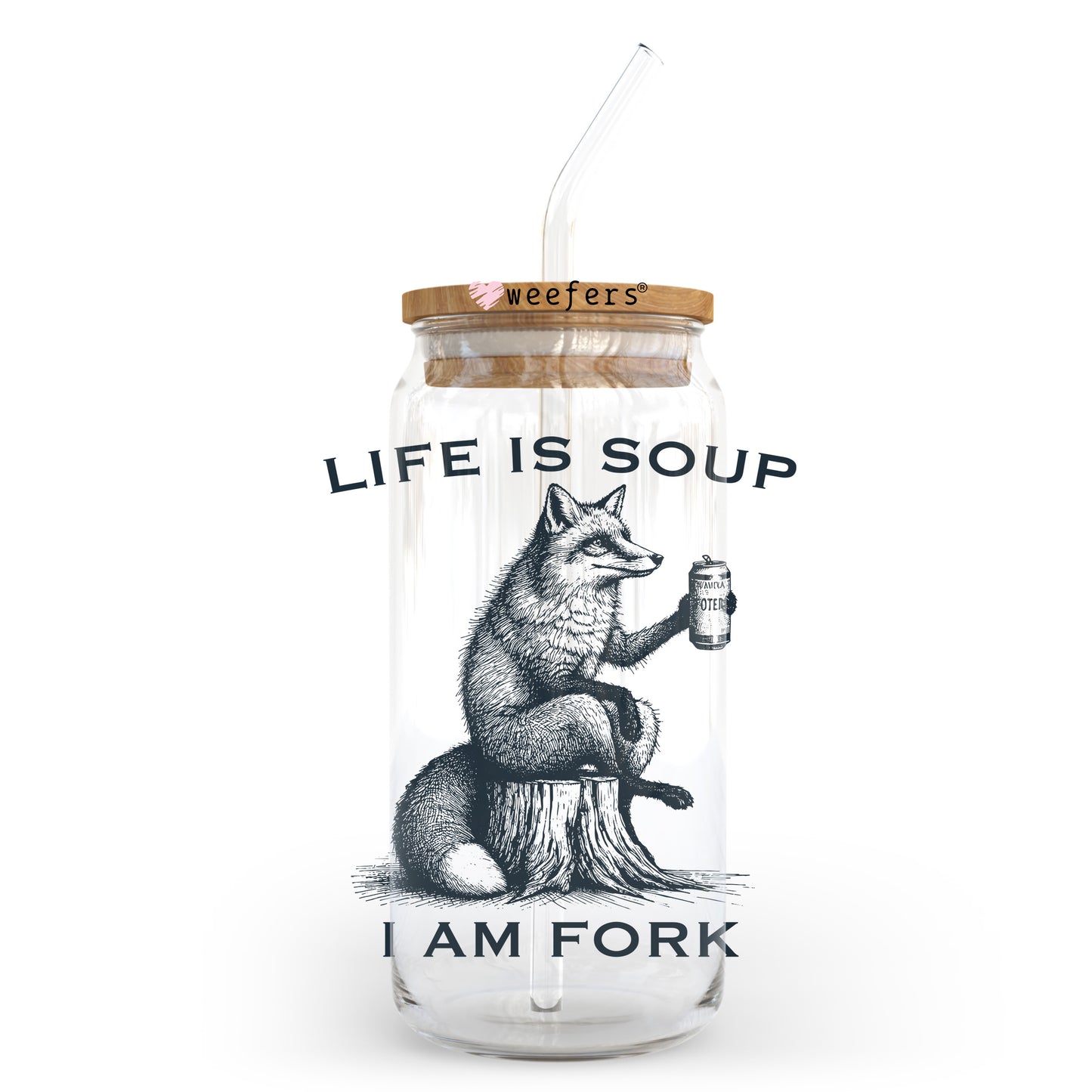 Life is Soup I Am Fork 20oz Libbey Glass Can, 34oz Hip Sip, 40oz Tumbler, 24oz Cold Cup UV DTF or Sublimation Decal Transfer