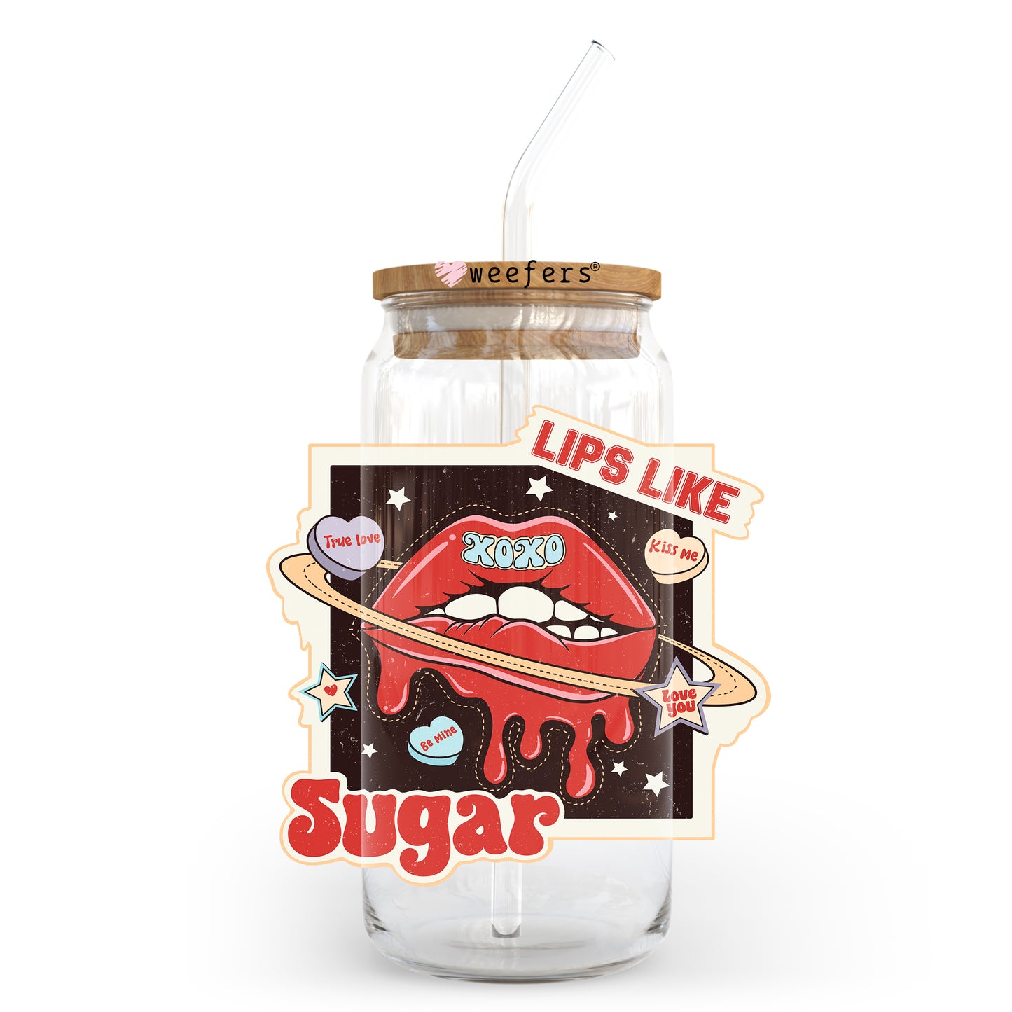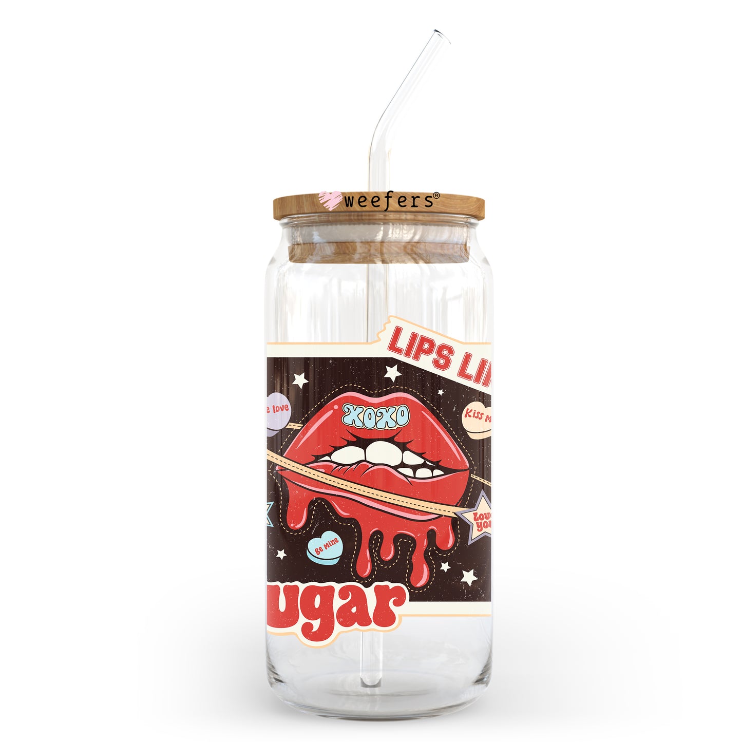 Lips Like Sugar Valentine's Day 20oz Libbey Glass Can UV DTF or Sublimation Wrap - Decal Description