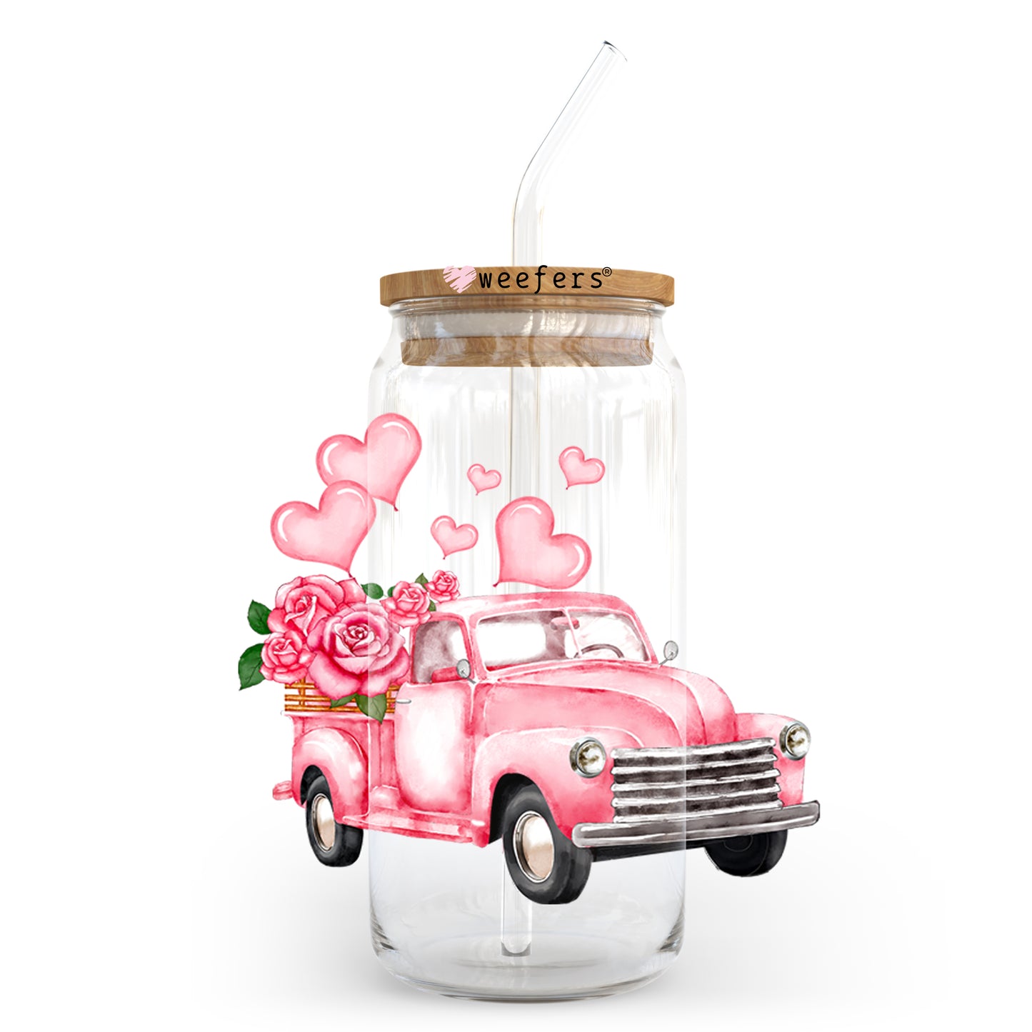 Love Truck Valentine's Day 20oz Libbey Glass Can UV DTF or Sublimation Wrap - Decal