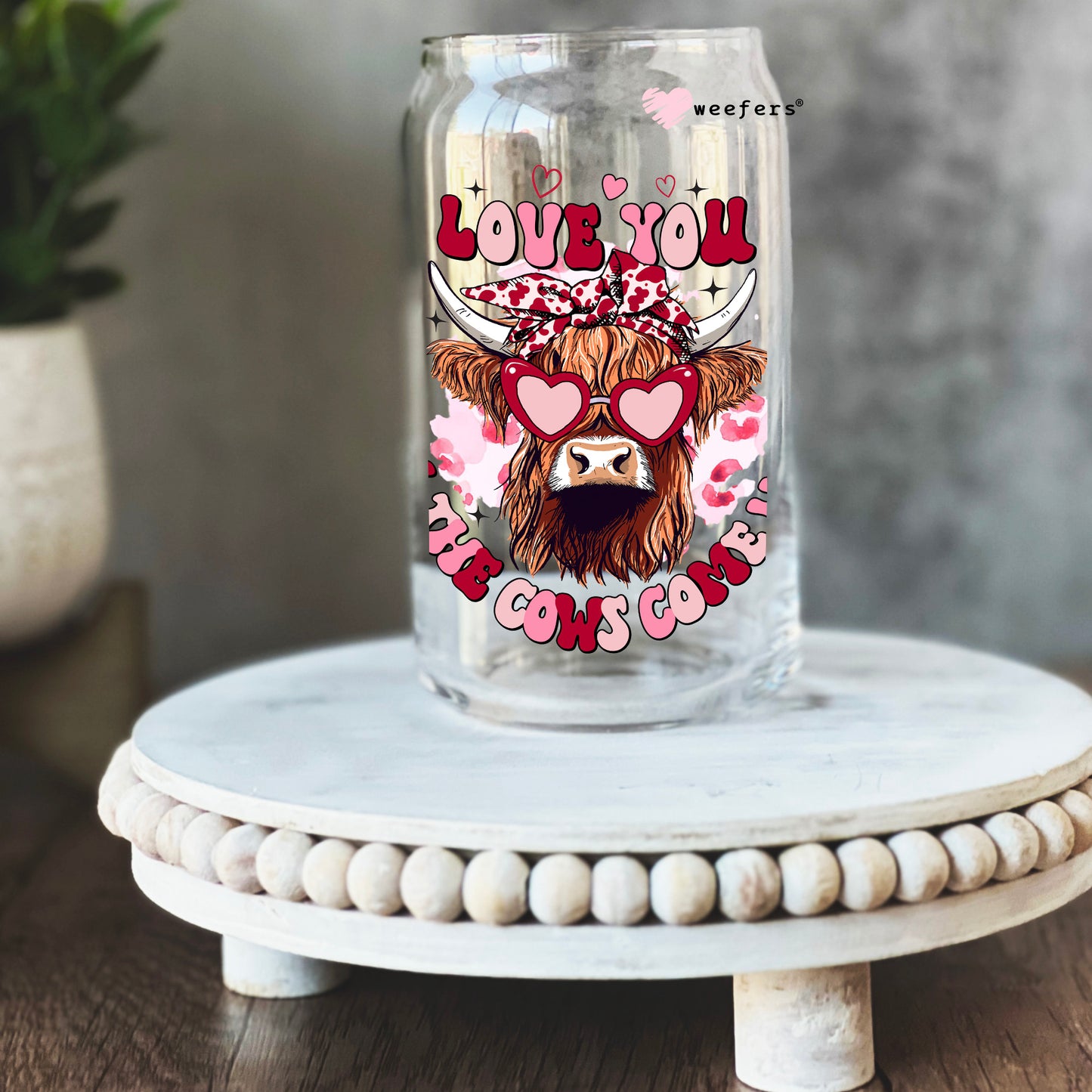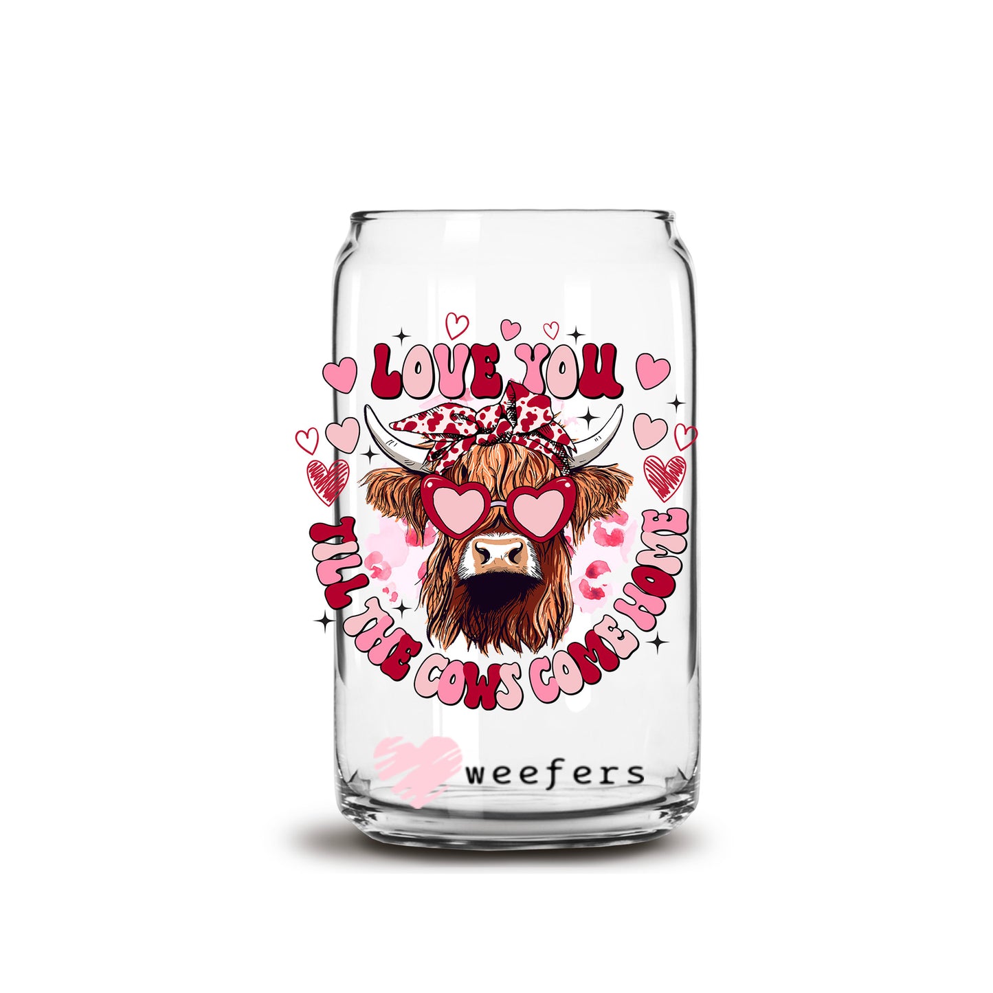 Love you till the Cows come Home Valentine's Day Highlander 16oz Libbey Glass Can UV DTF or Sublimation Cup Wrap - Decal Transfer