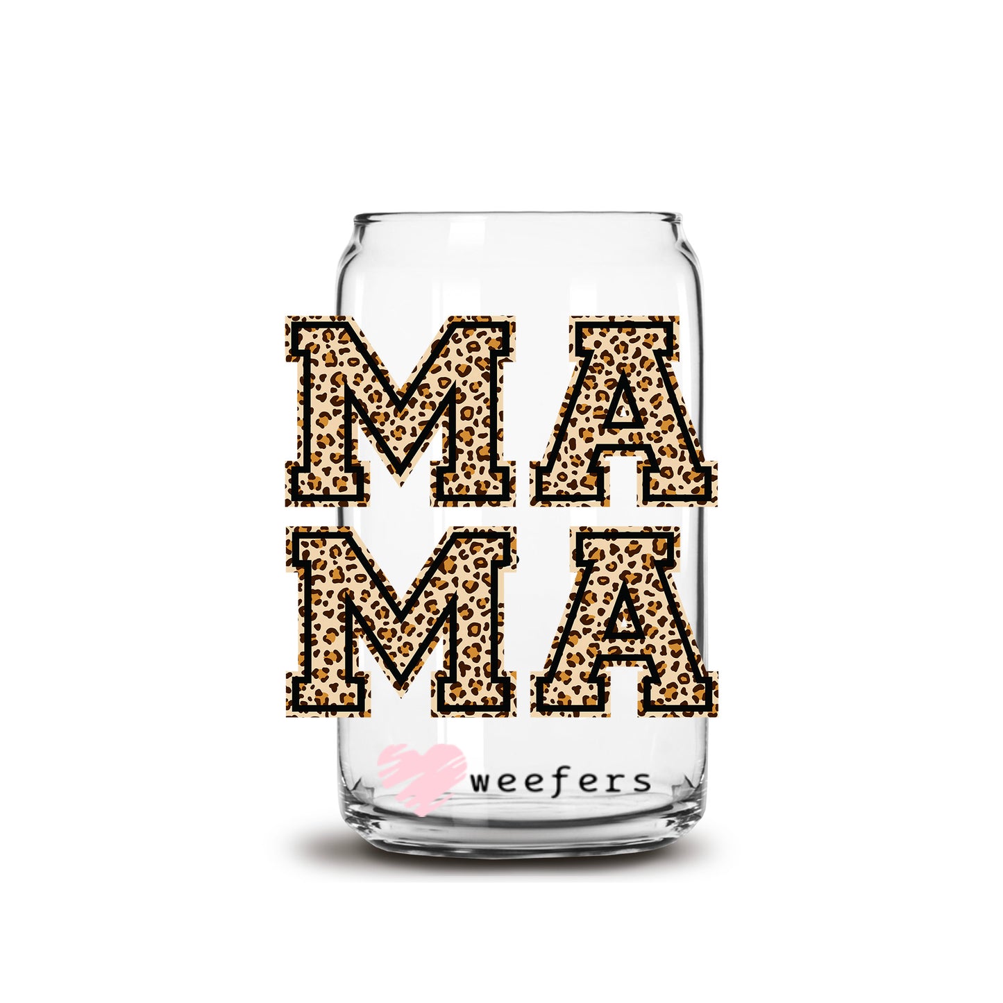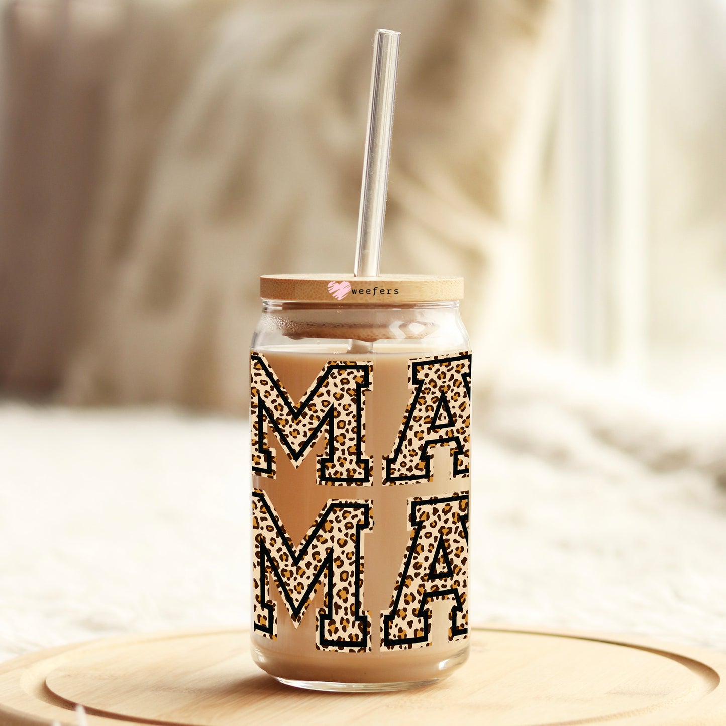 MaMa Stacked Leopard 16oz Libbey Glass Can UV DTF or Sublimation Wrap - Decal Description