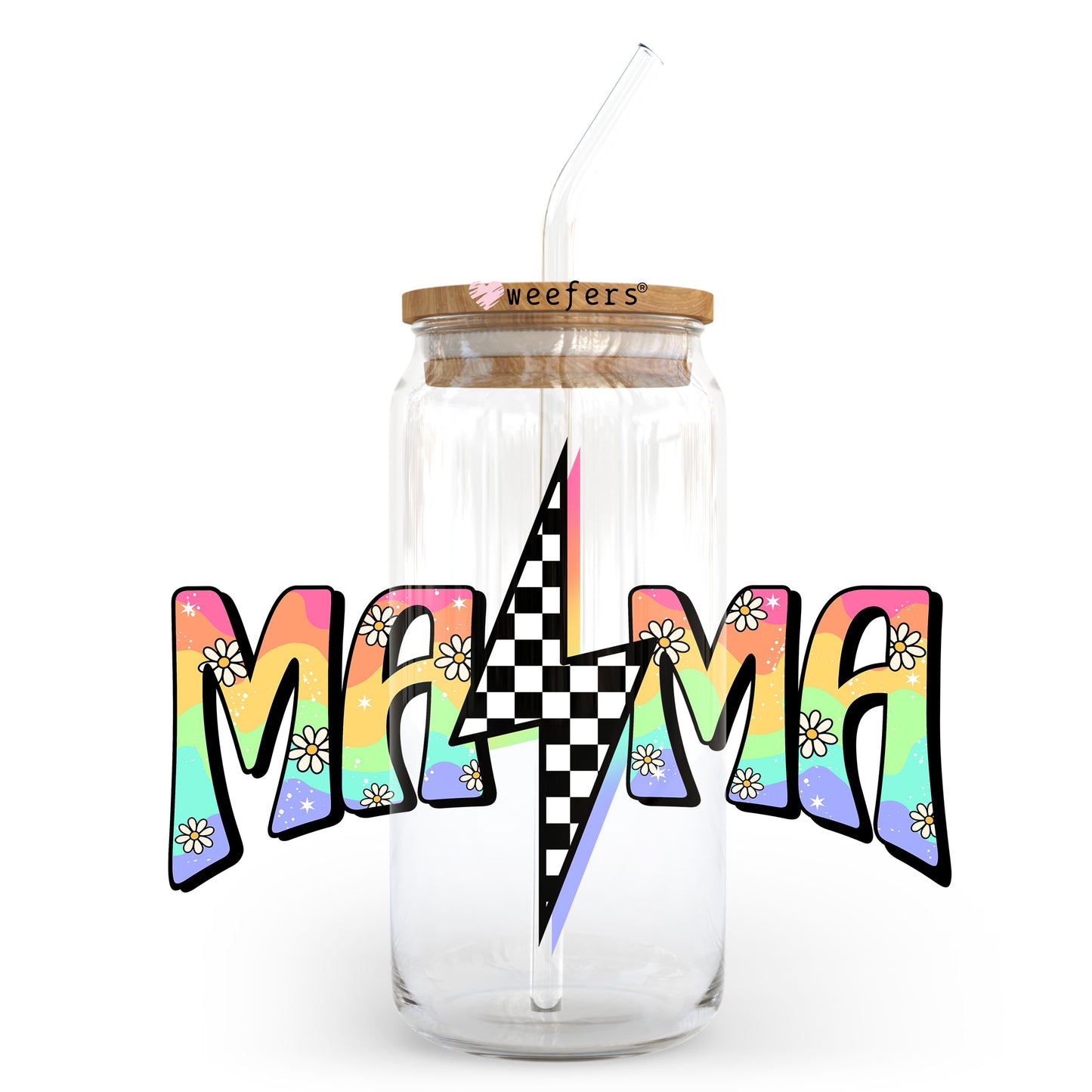 Mama Checkered Lightening Bolt 20oz Libbey Glass Can UV DTF or Sublimation Decal