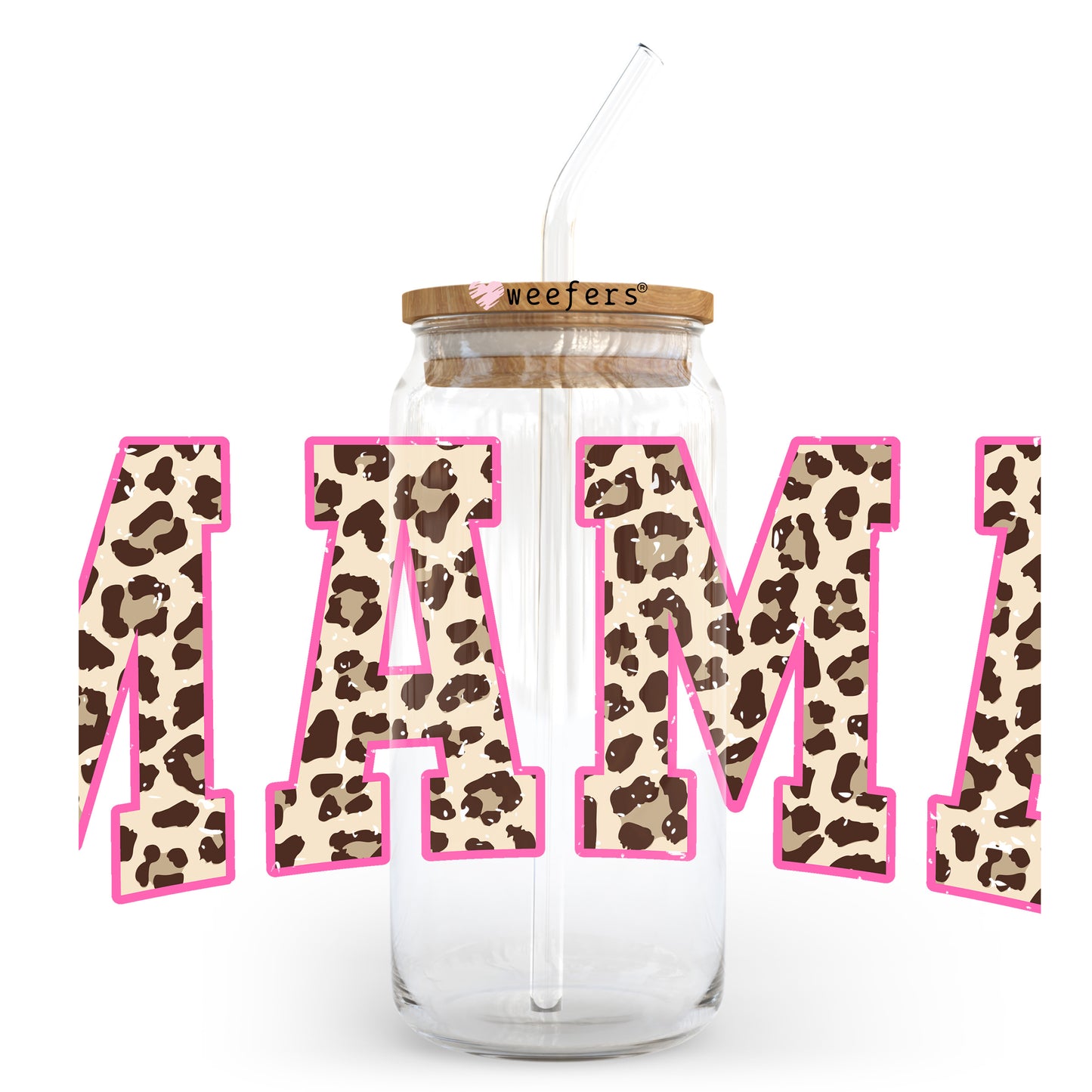 Mama Leopard Beige and Pink 20oz Libbey Glass Can, 34oz Hip Sip UV DTF or Sublimation Decal Transfer