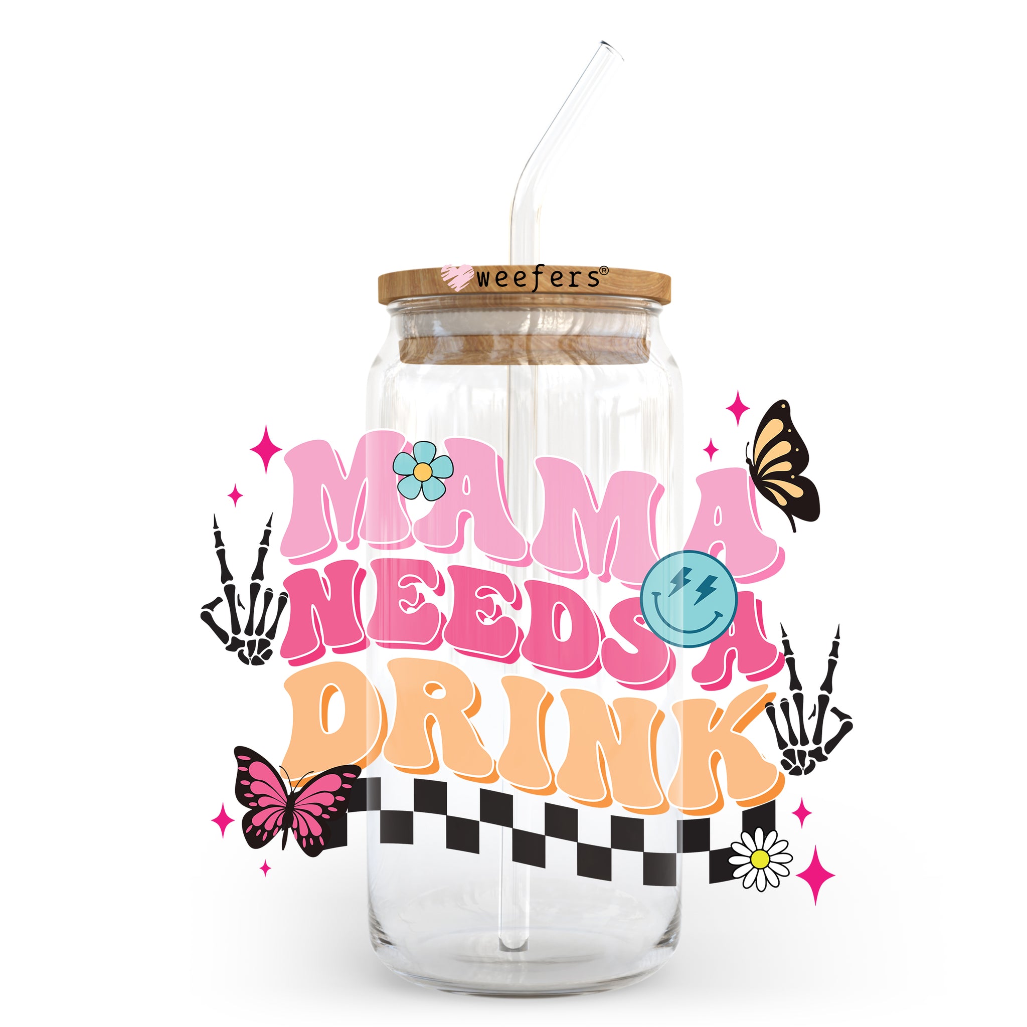 Mama Needs a Drink 20oz Libbey Glass Can, 34oz Hip Sip, 40oz Tumbler UV DTF or Sublimation Decal Transfer