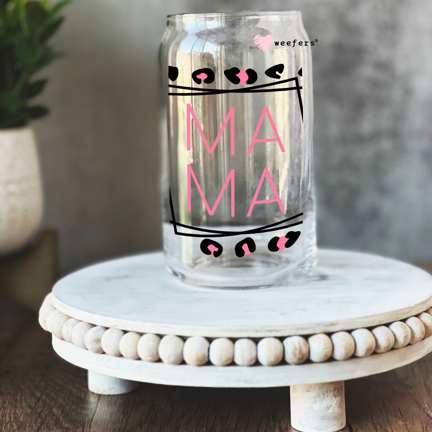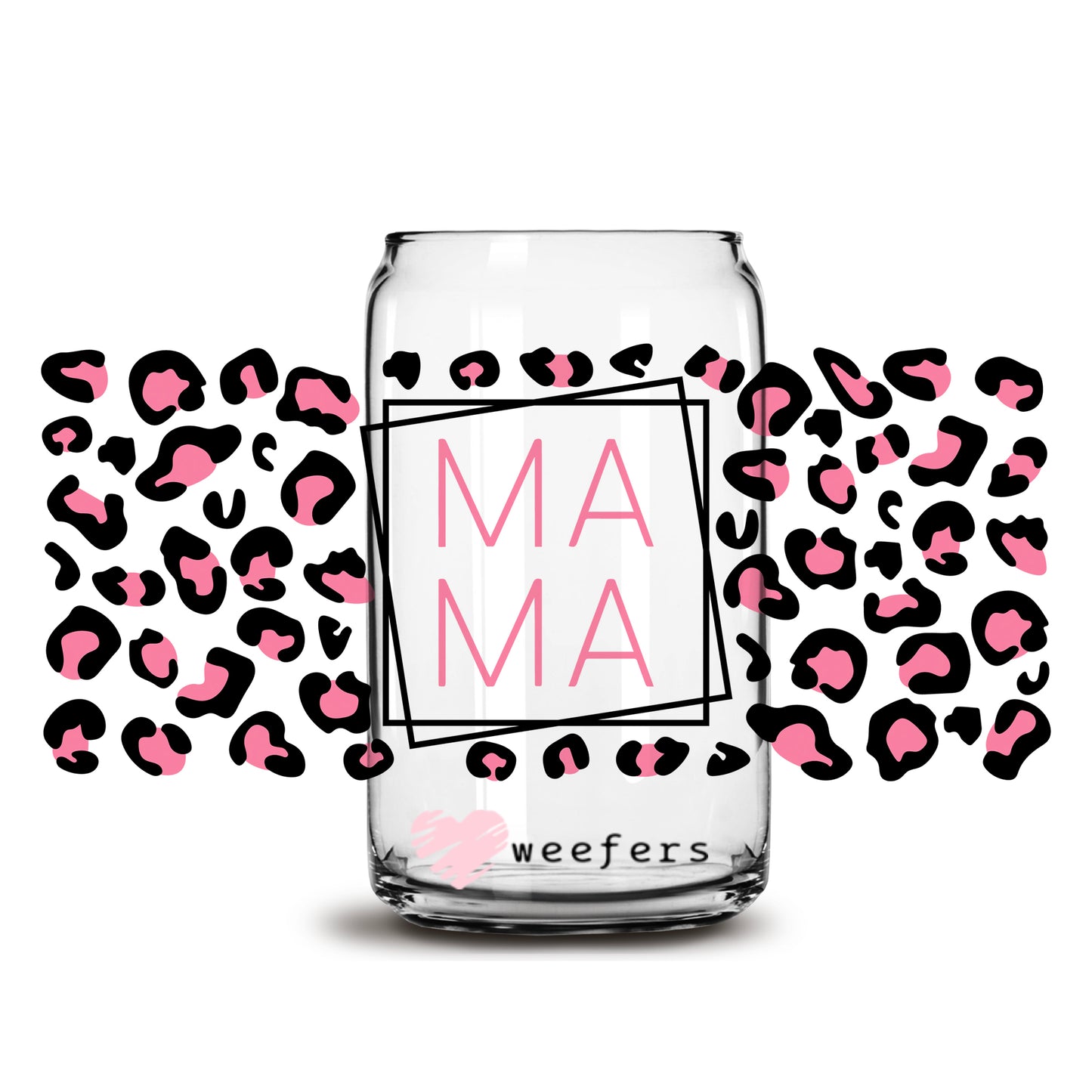 Mama Pink and Black Cheetah Print 16oz Libbey Glass Can UV DTF or Sublimation Wrap - Decal