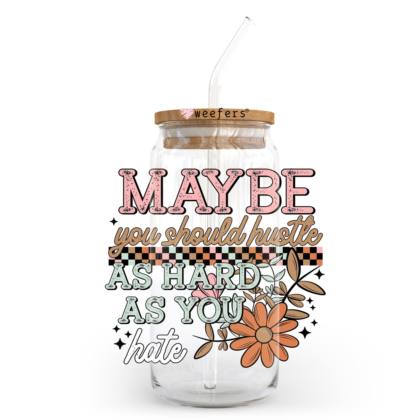 Maybe You Should Hustle As Hard As You Hate 20oz Libbey Glass Can, 34oz Hip Sip, 40oz Tumbler, 24oz Cold Cup UV DTF or Sublimation Decal Transfer