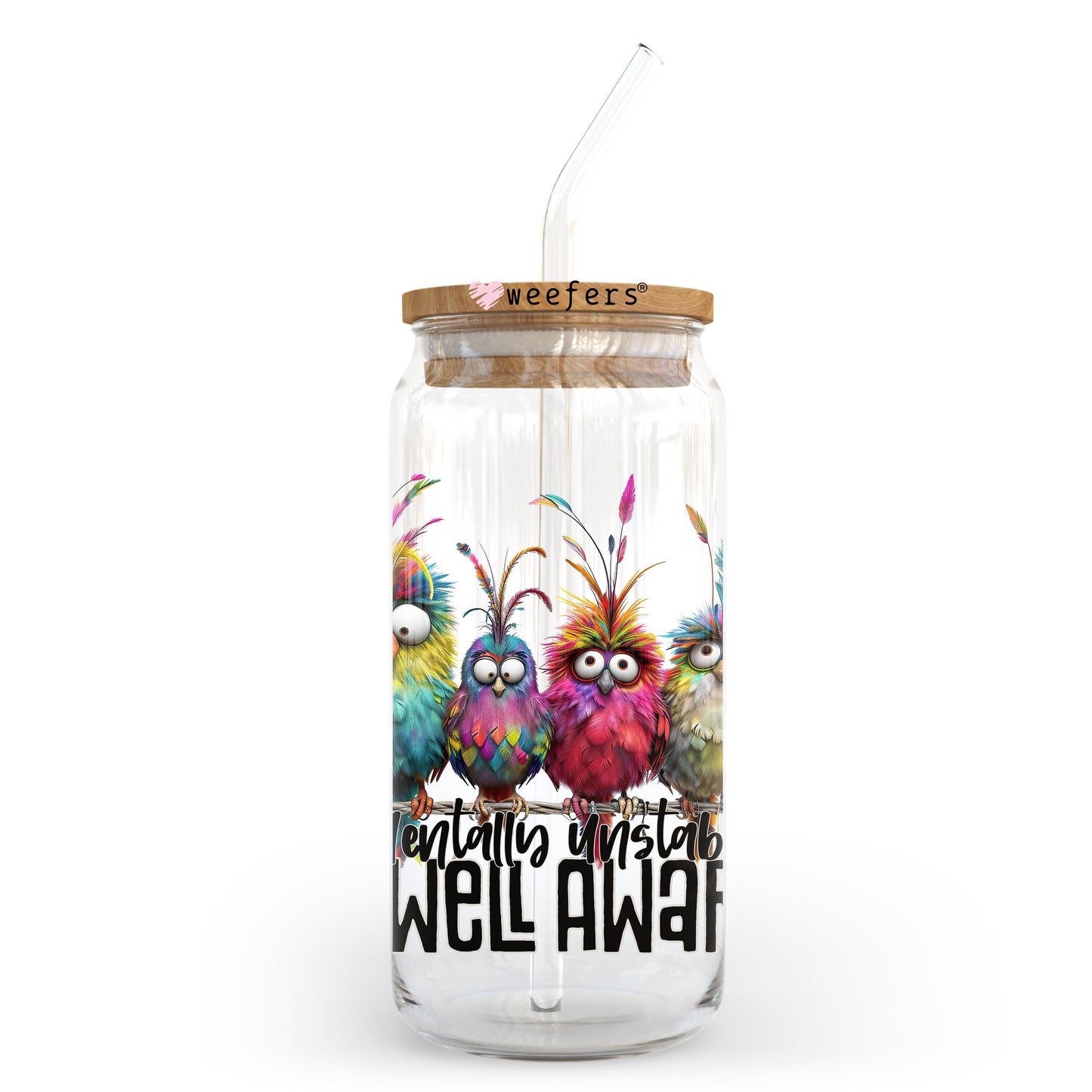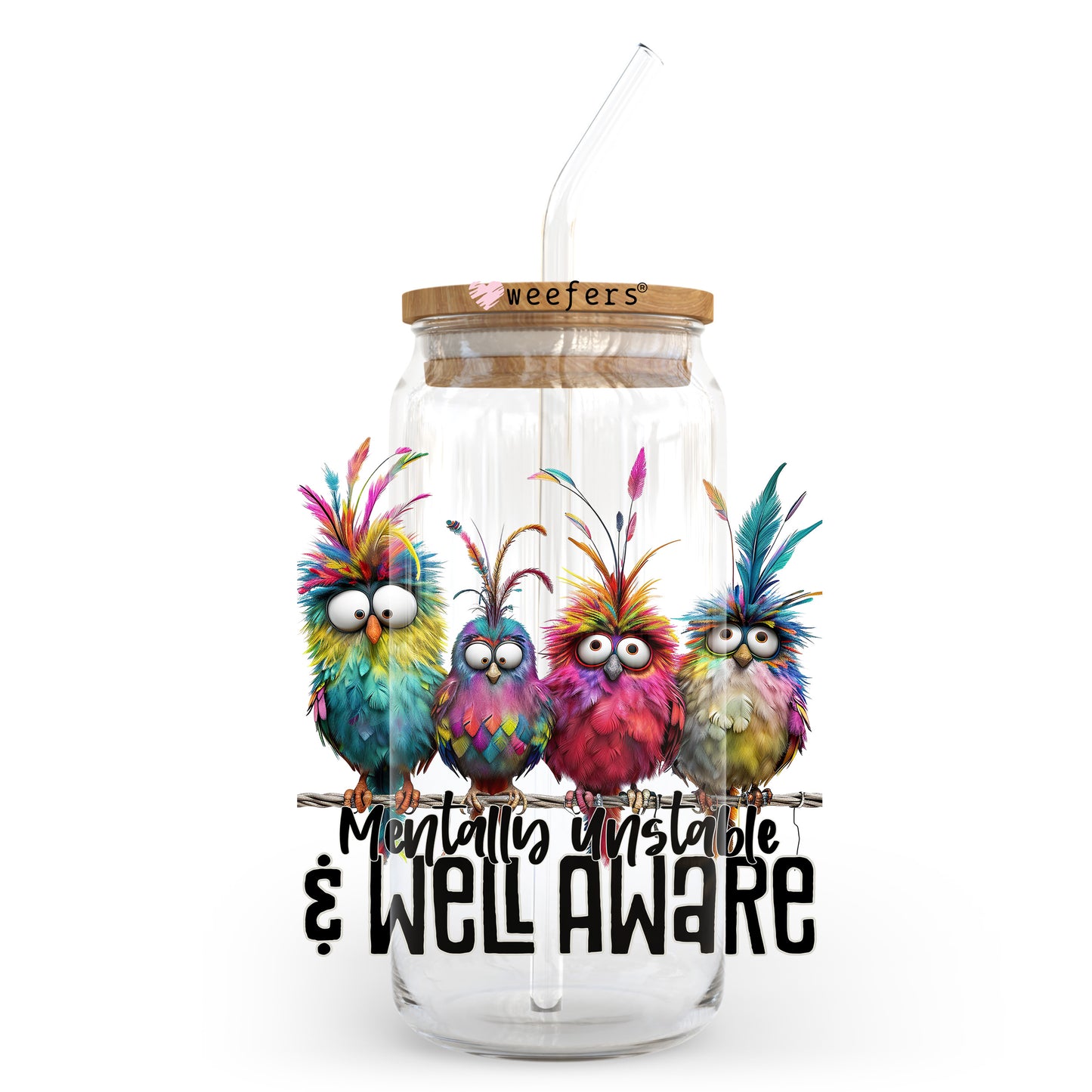 Mentally Unstable And Well Aware Black Font 20oz Libbey Glass Can, 34oz Hip Sip, 40oz Tumbler, 24oz Cold Cup UV DTF or Sublimation Decal Transfer Description