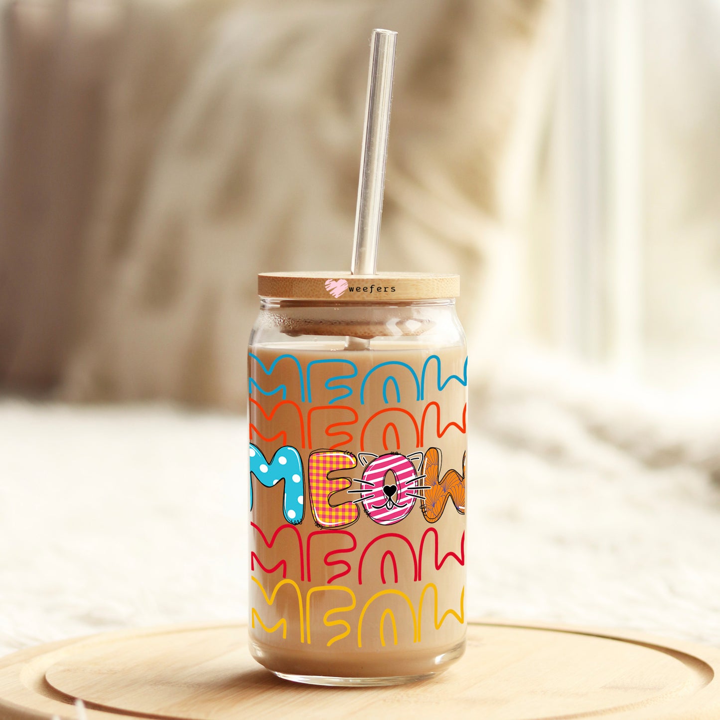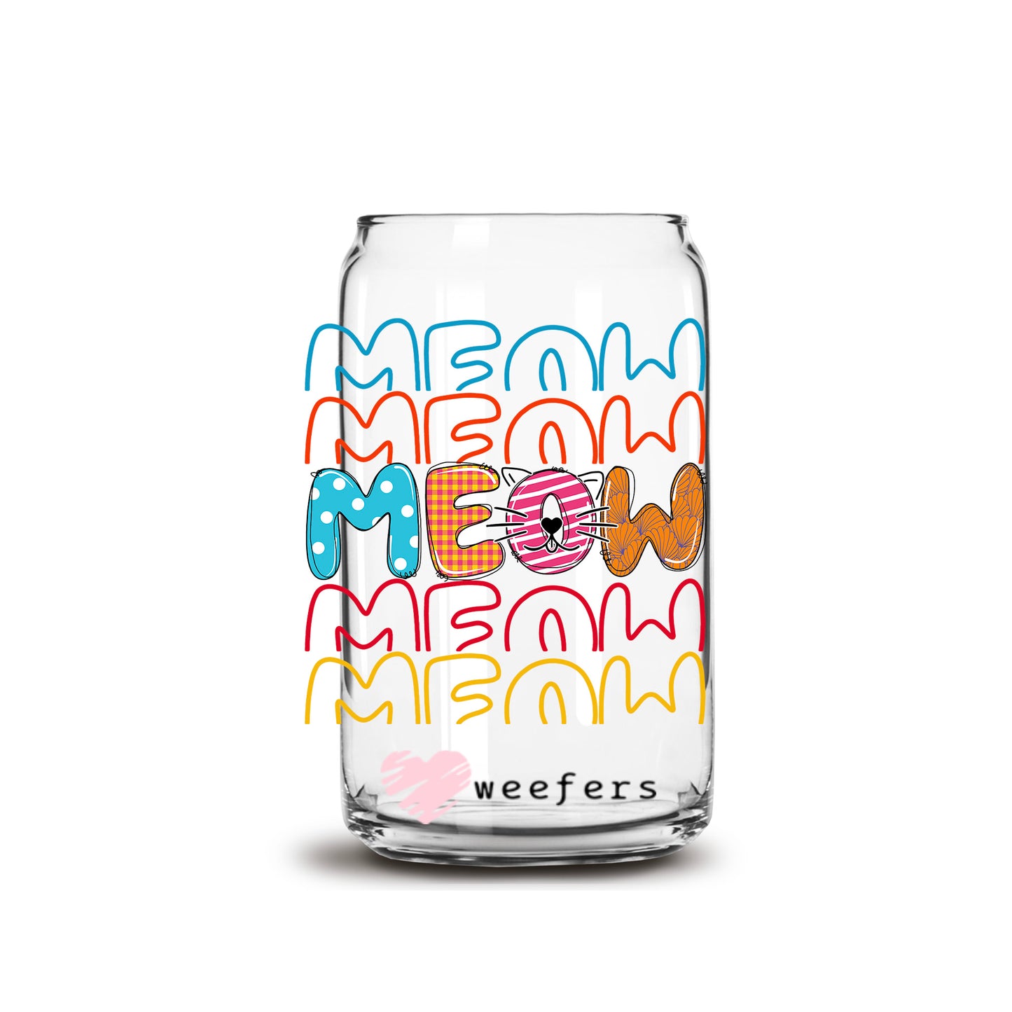 Meow Cat 16oz Libbey Glass Can UV DTF or Sublimation Cup Wrap - Decal Transfer