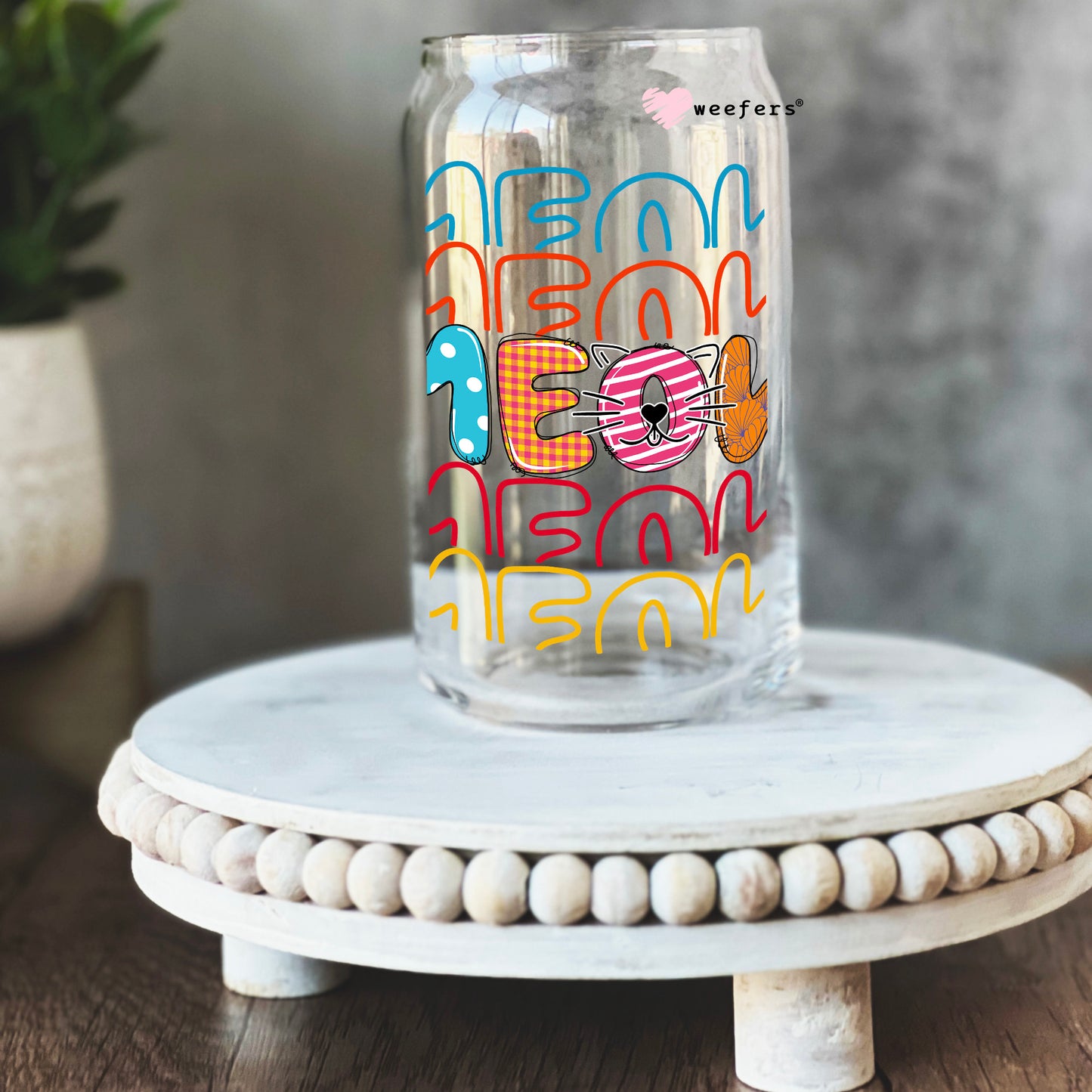 Meow Cat 16oz Libbey Glass Can UV DTF or Sublimation Cup Wrap - Decal Transfer Description