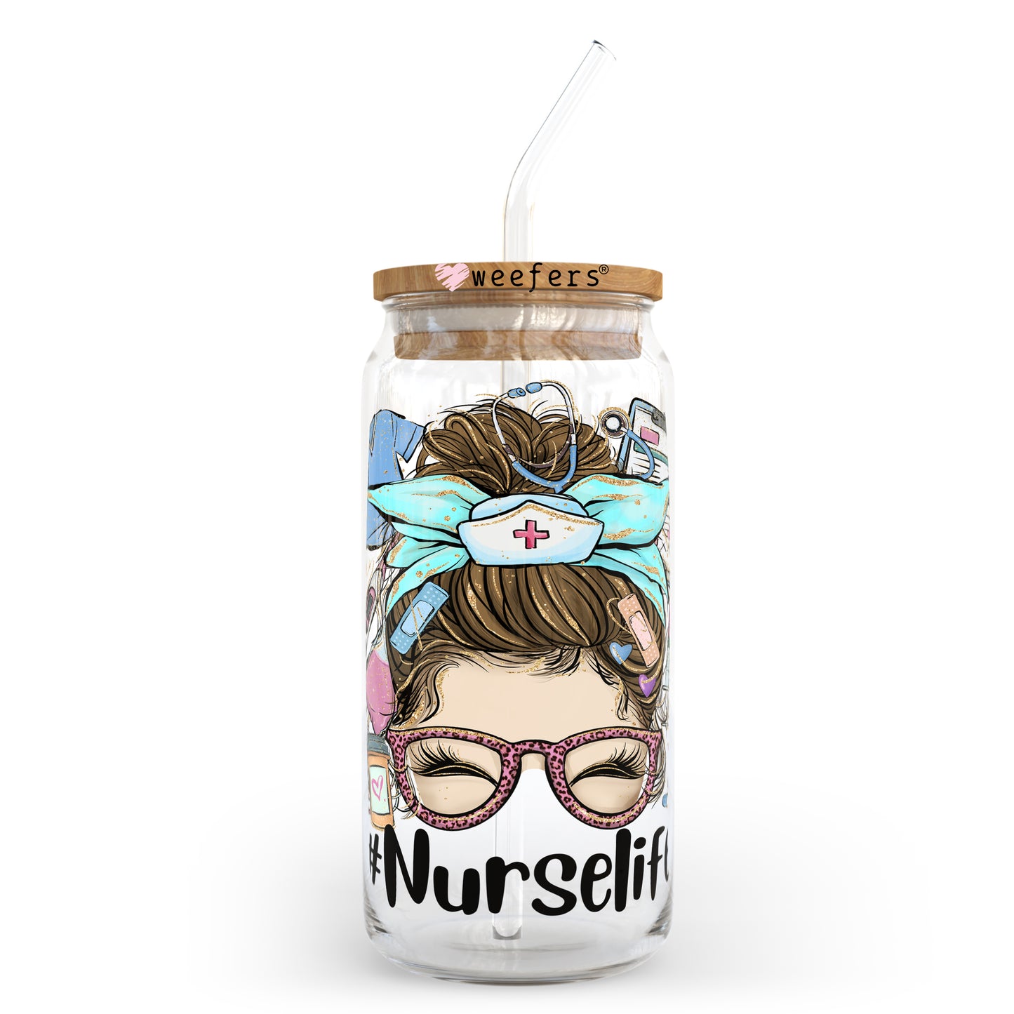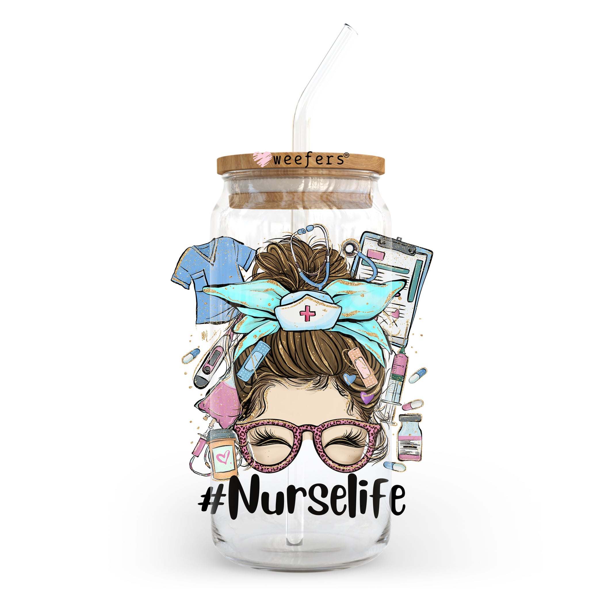 Messy Bun Nurse Life 20oz Libbey Glass Can UV DTF or Sublimation Wrap - Decal