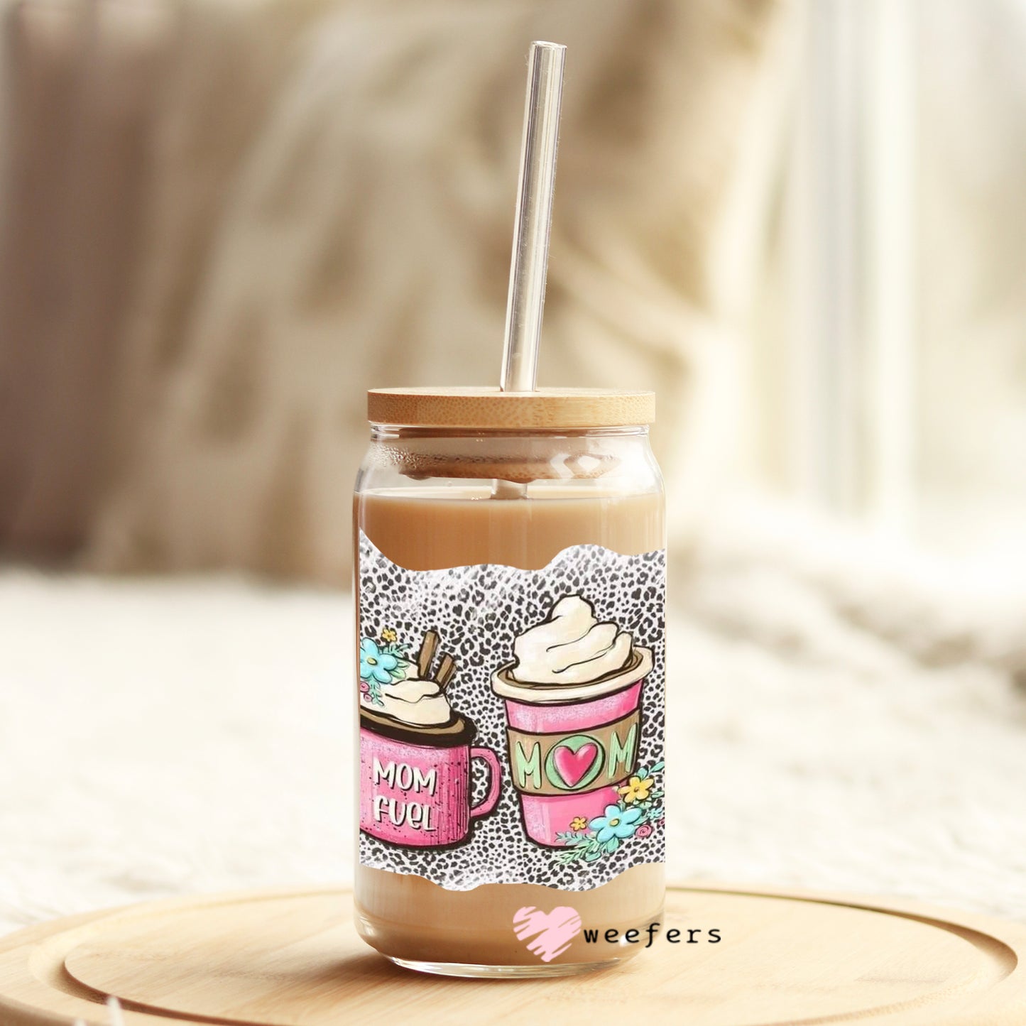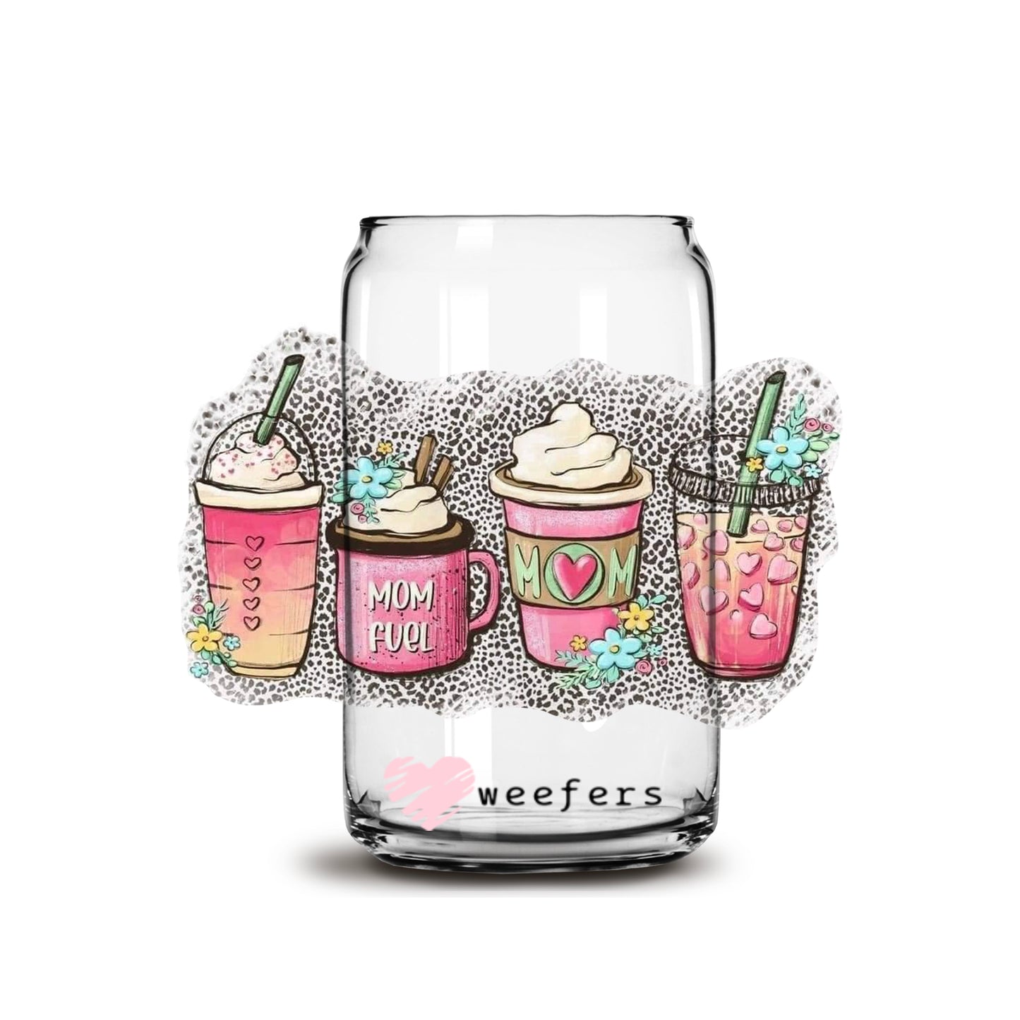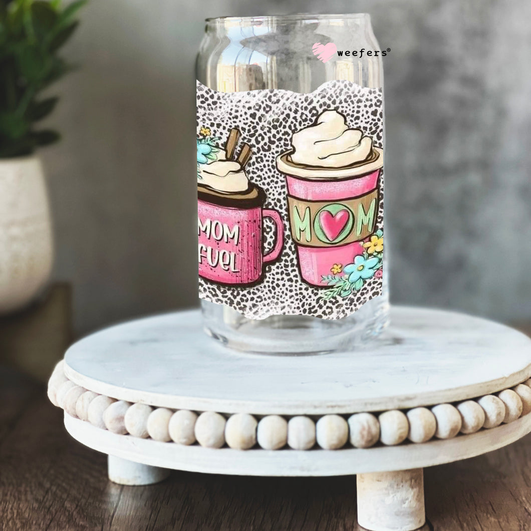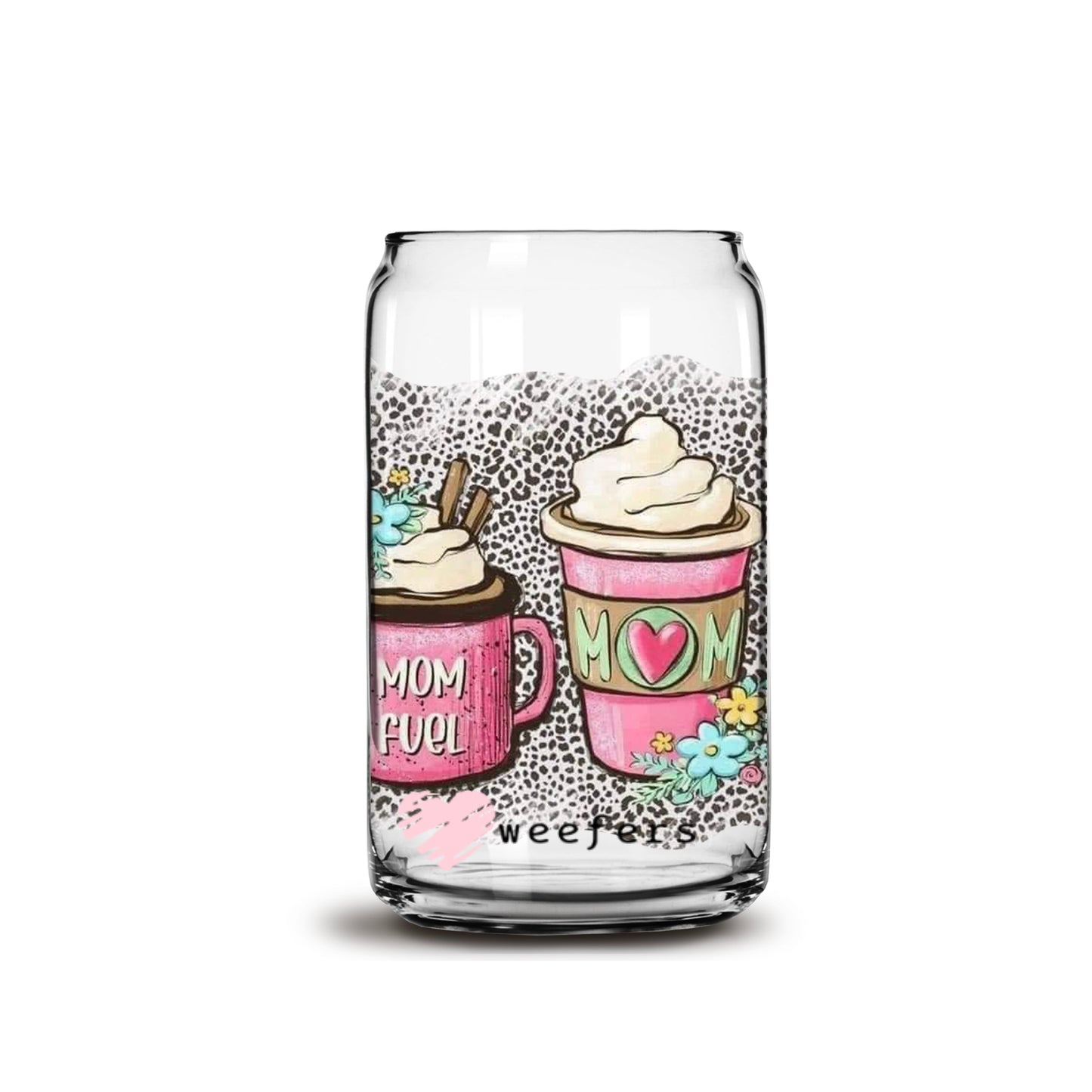 Mom Fuel Coffee Latte 16oz Libbey Glass Can UV DTF or Sublimation Wrap - Decal