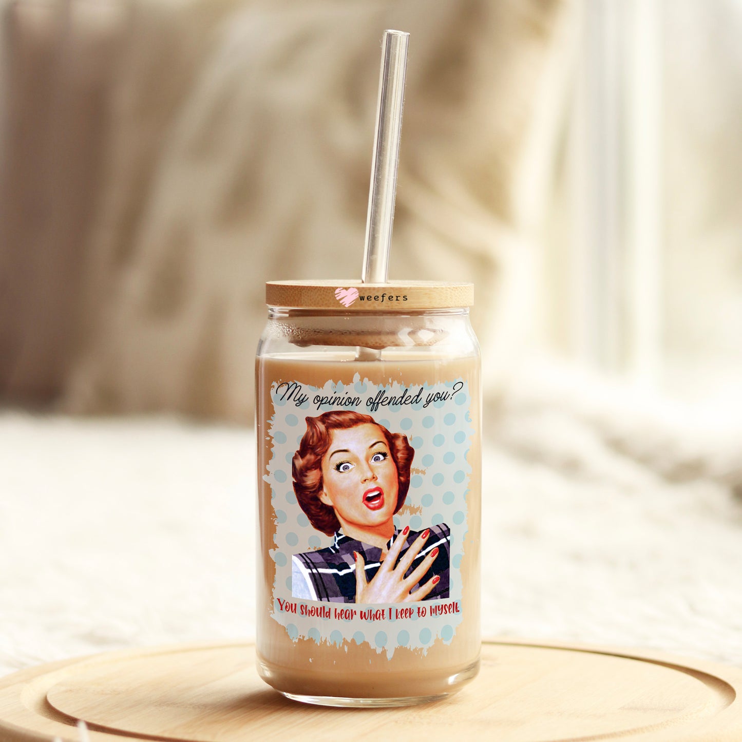 My Opinion Offended you? 16oz Libbey Glass Can UV DTF or Sublimation Cup Wrap - Decal Transfer Description