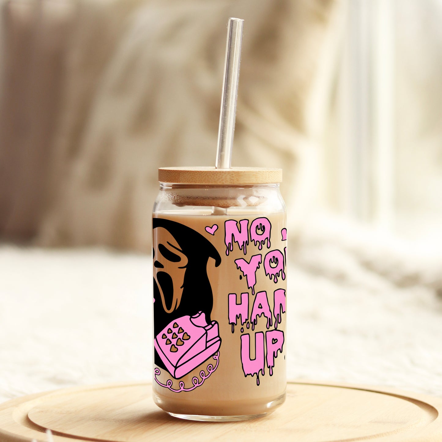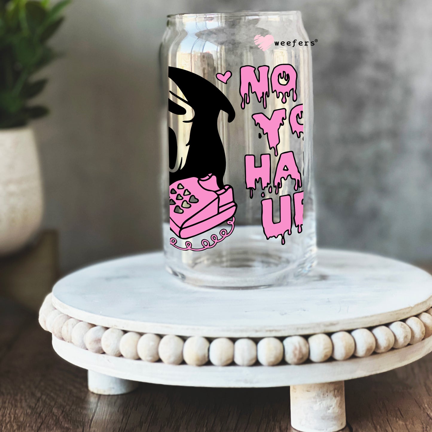 No You Hang Up Valentine's Day 16oz Libbey Glass Can UV DTF or Sublimation Cup Wrap - Decal Transfer