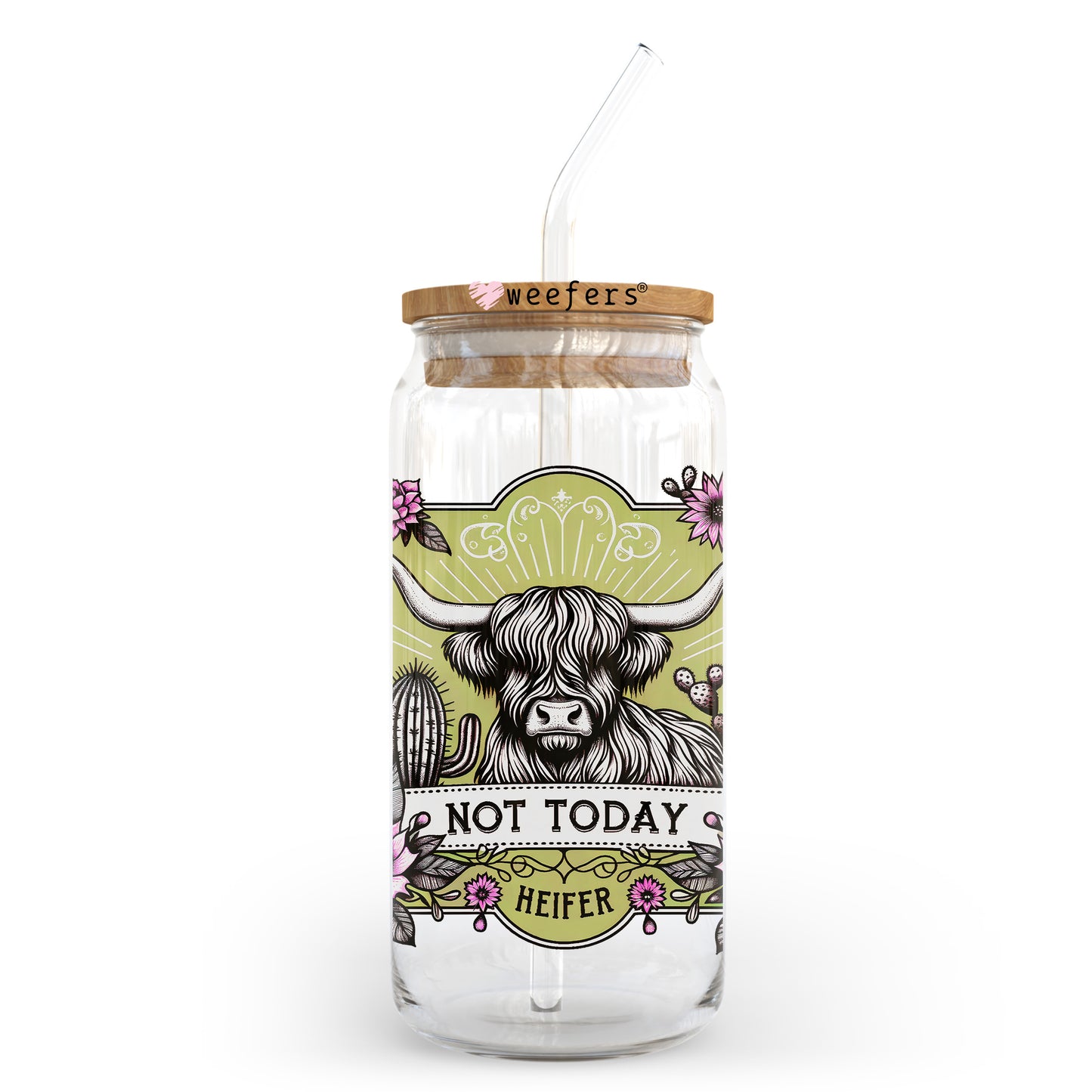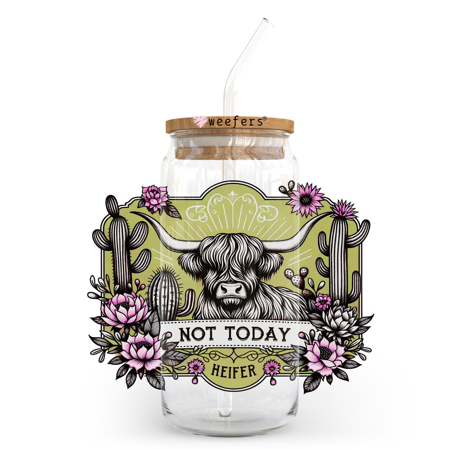 Not Today Heifer 20oz Libbey Glass Can, 34oz Hip Sip, 40oz Tumbler, 24oz Cold Cup UV DTF or Sublimation Decal Transfer