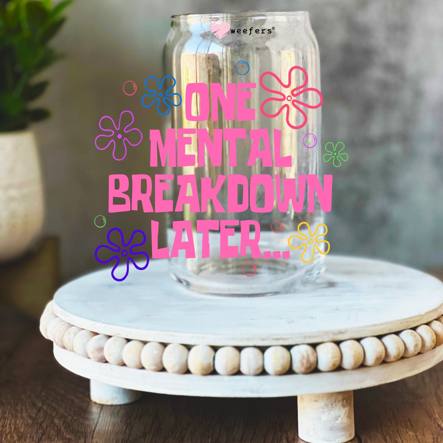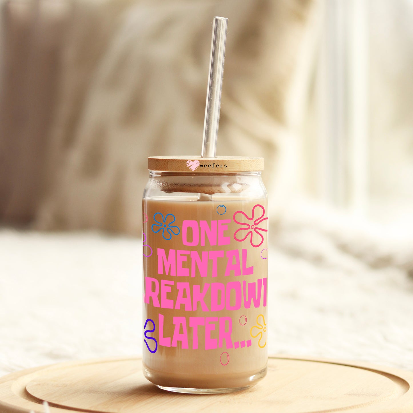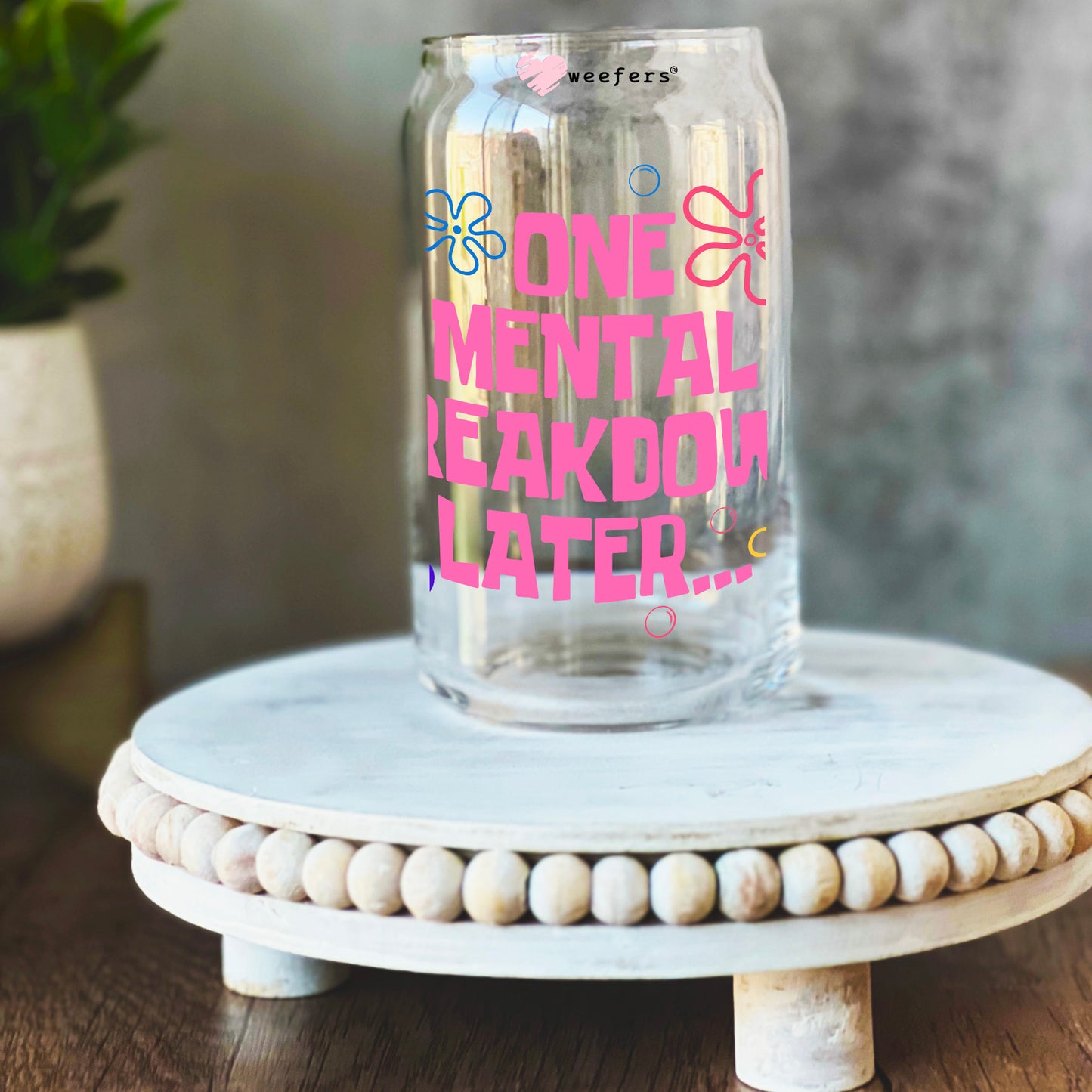 One Mental Breakdown Later Pink 16oz Libbey Glass Can UV DTF or Sublimation Wrap Decal Transfer