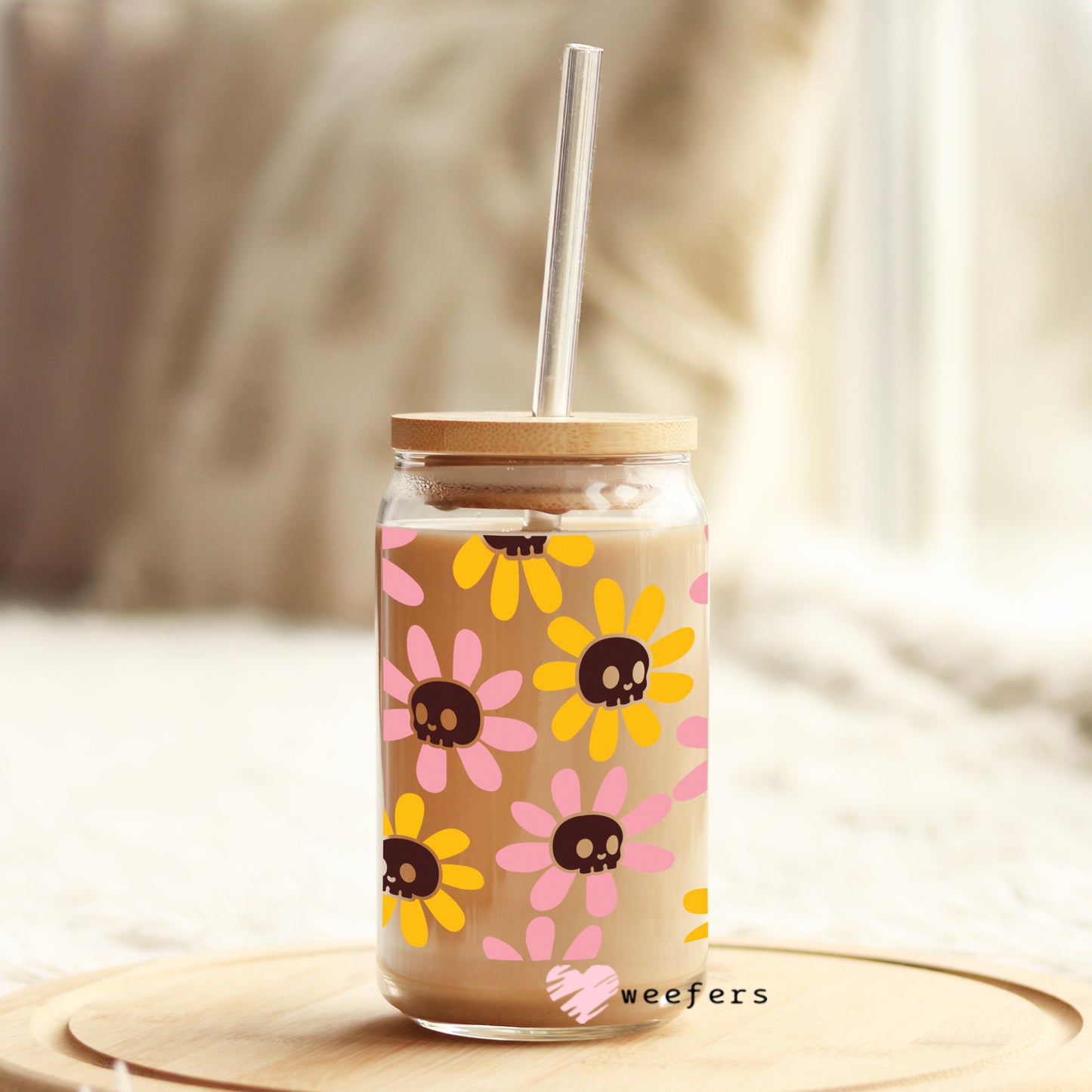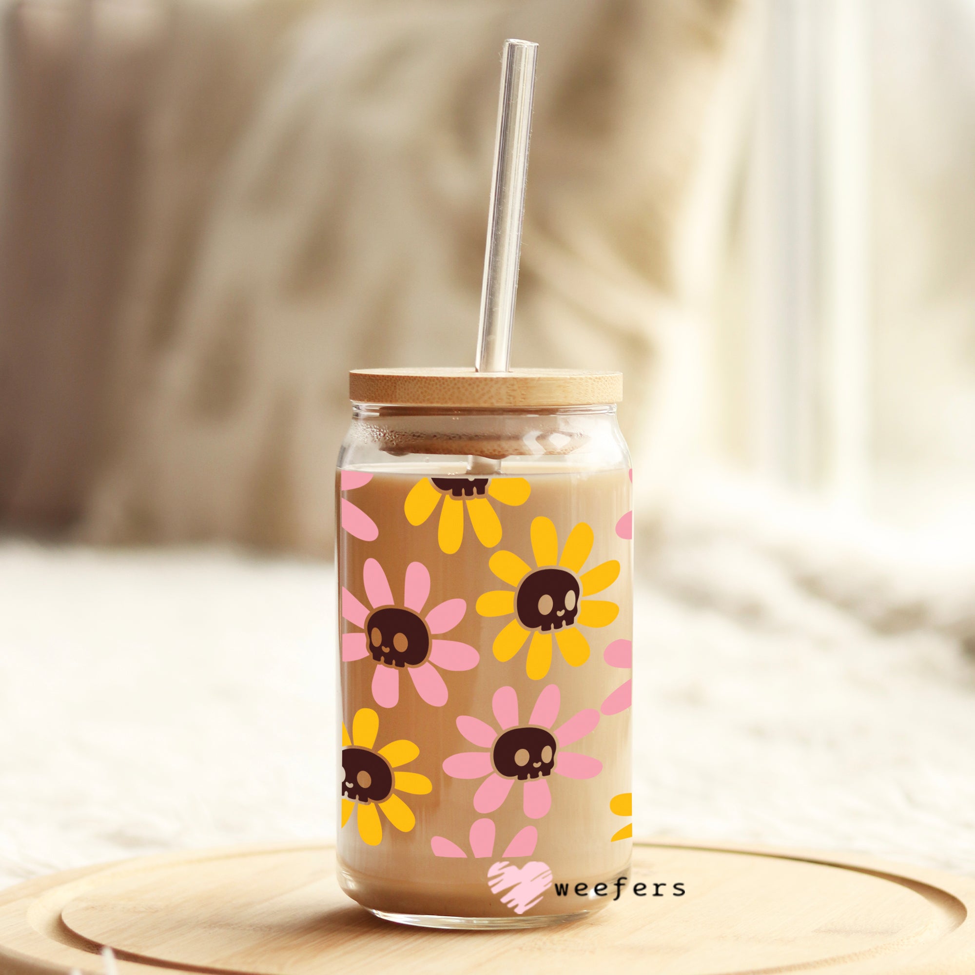 Orange and Pink Flower Skulls 16oz Libbey Glass Can UV DTF or Sublimation Wrap - Decal Description