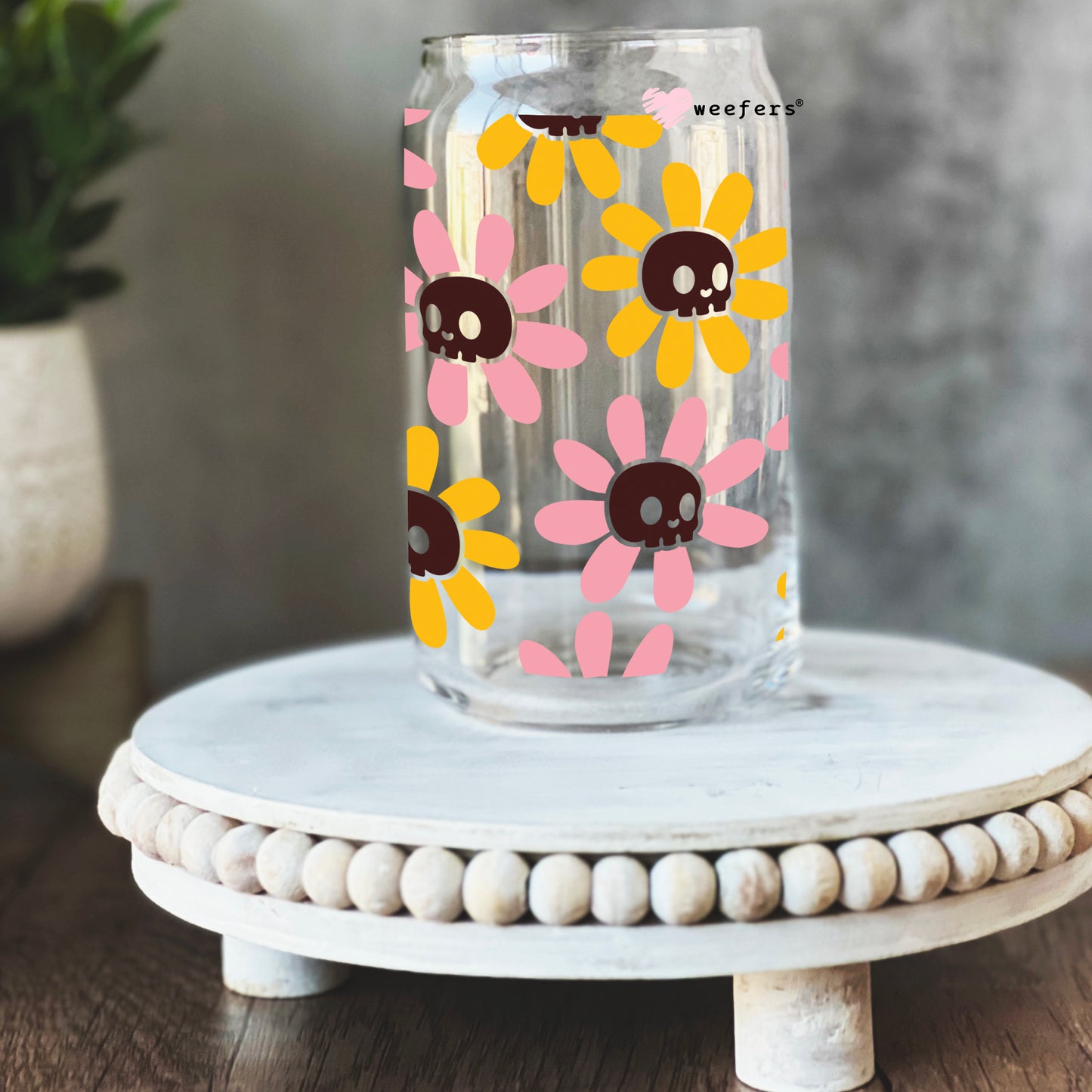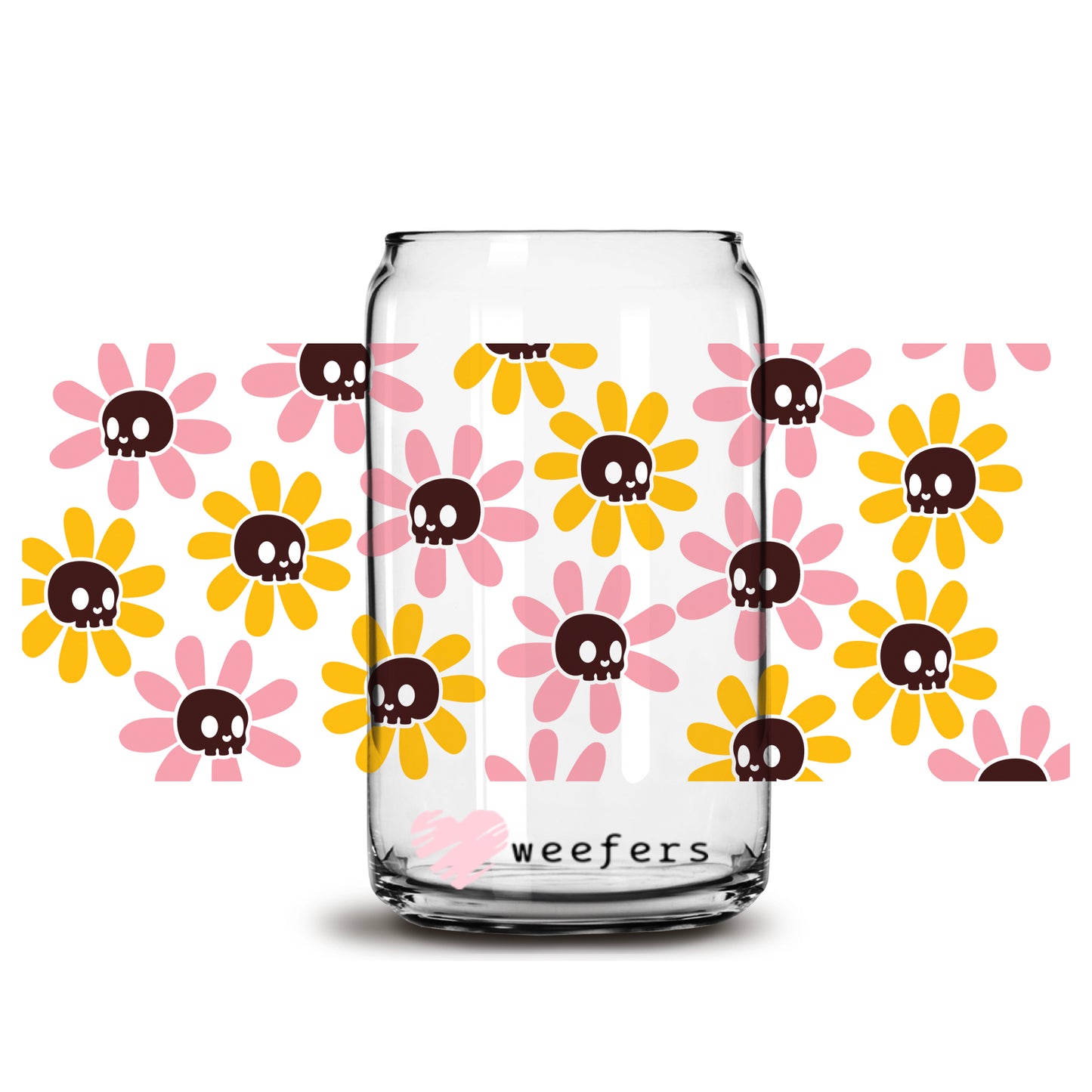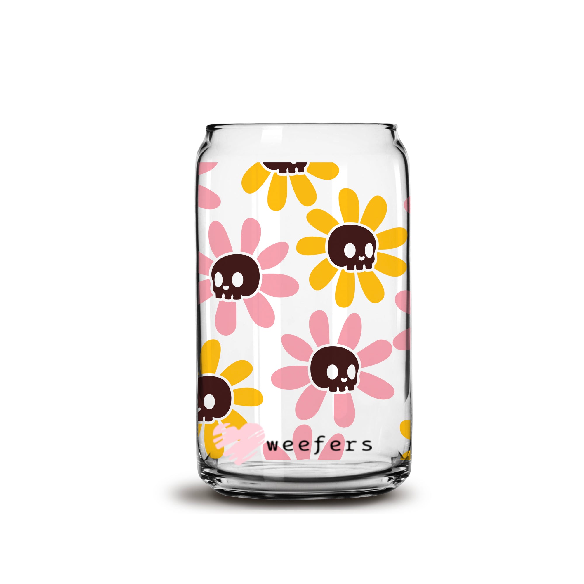 Orange and Pink Flower Skulls 16oz Libbey Glass Can UV DTF or Sublimation Wrap - Decal
