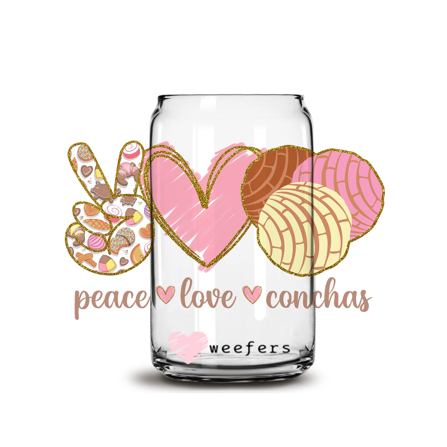Peace Love Conchas 16oz Libbey Glass Can UV DTF or Sublimation Wrap - Decal Description
